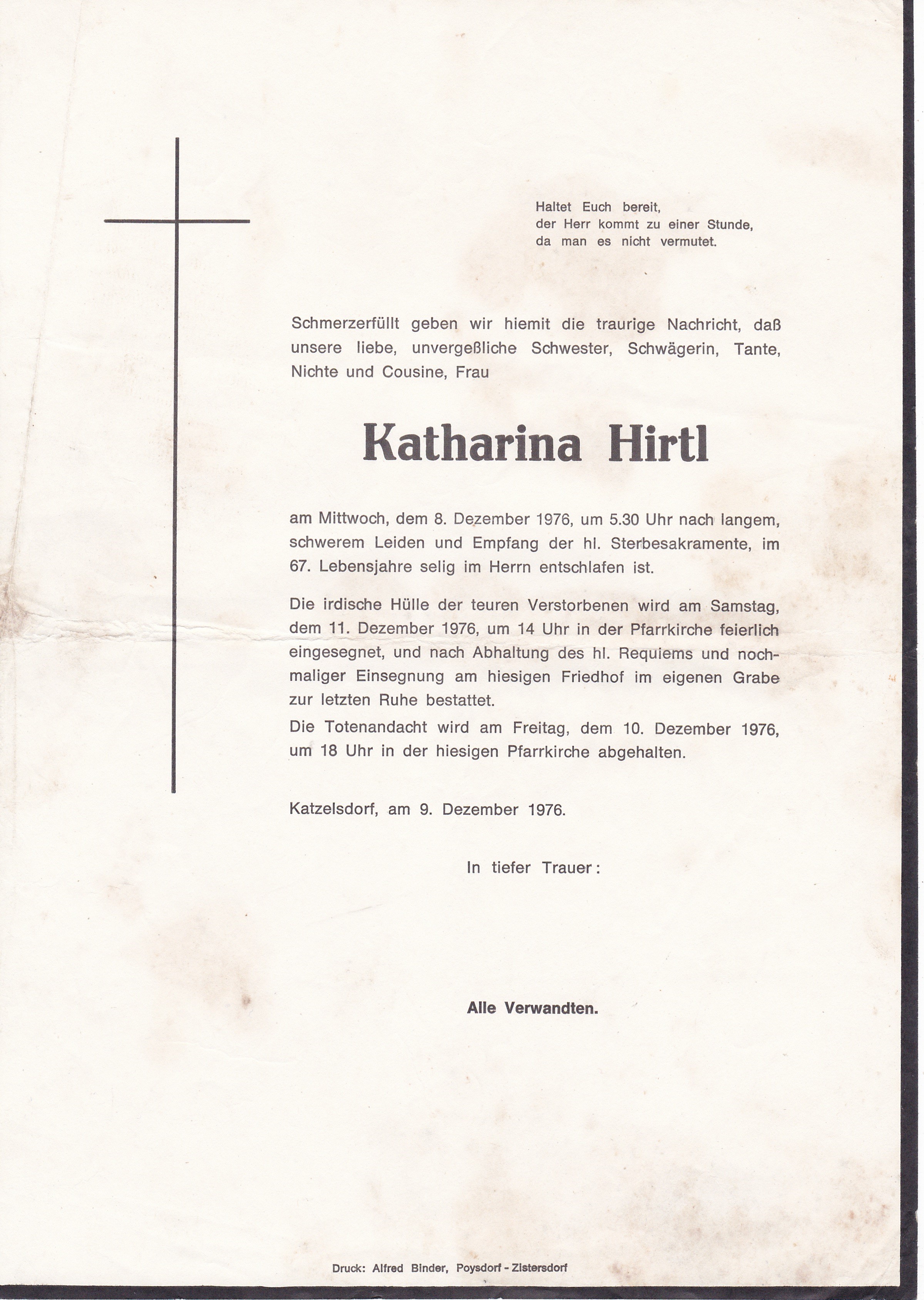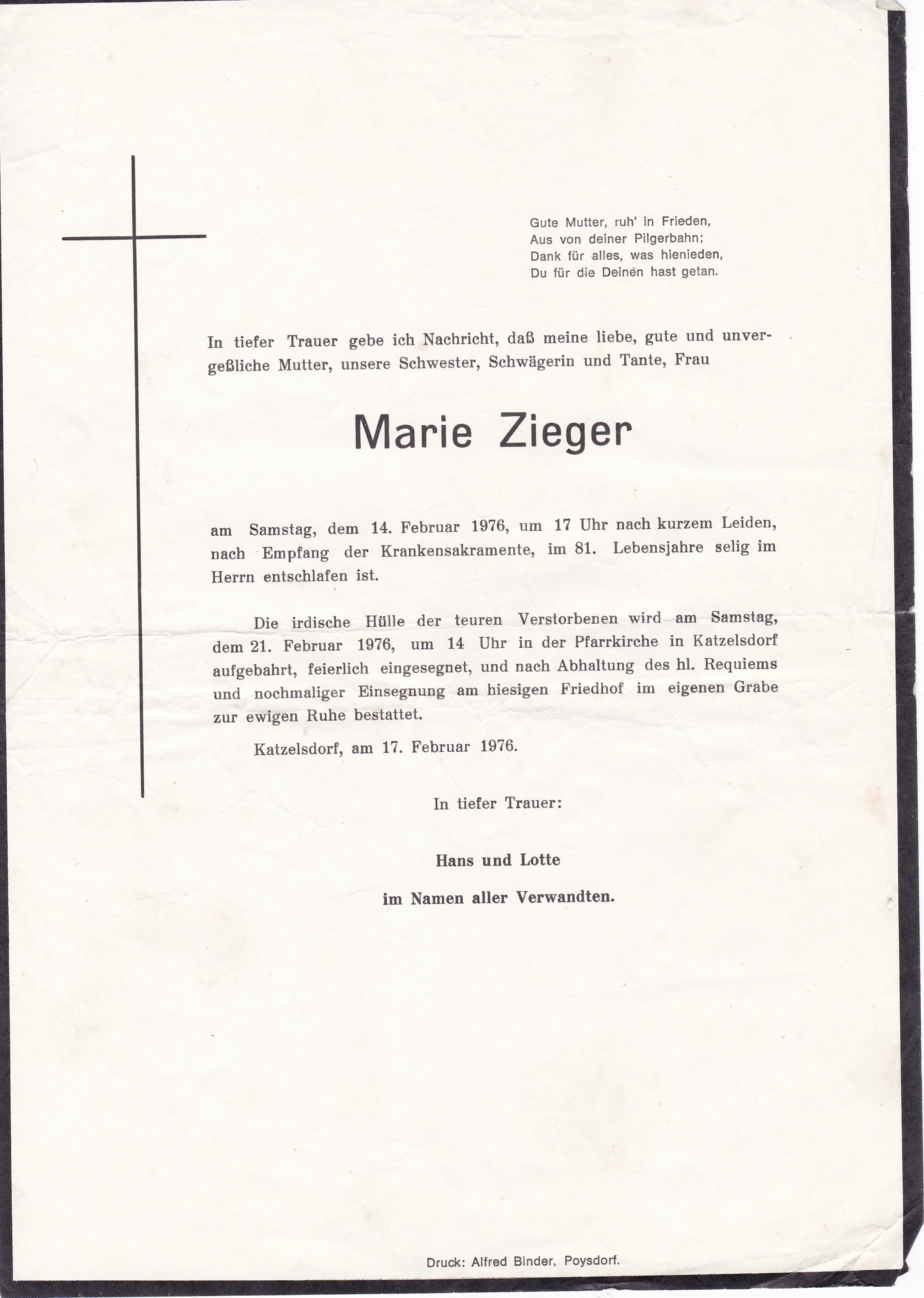 3 Radschin 74 Katzelsdorf - 2231 Straßhof - *05.04.1899 +01.04.1976 |