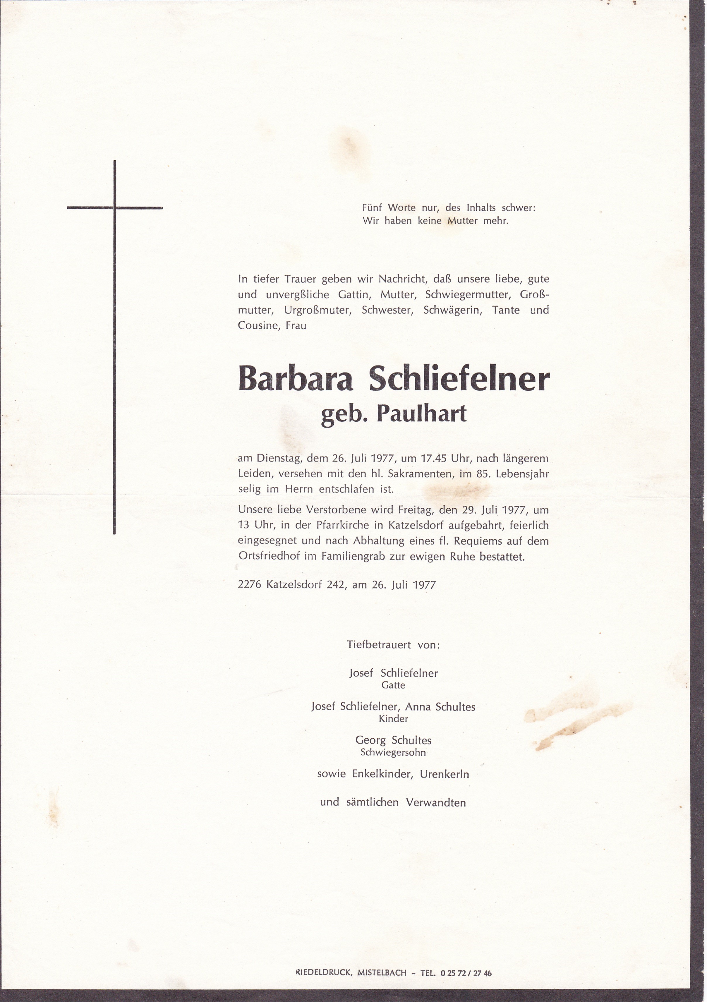 10 Schliefelner Barbara (Paulhart) vw Hiebner Marterberg 242 - *08.04.1893 +23.07.1977 |