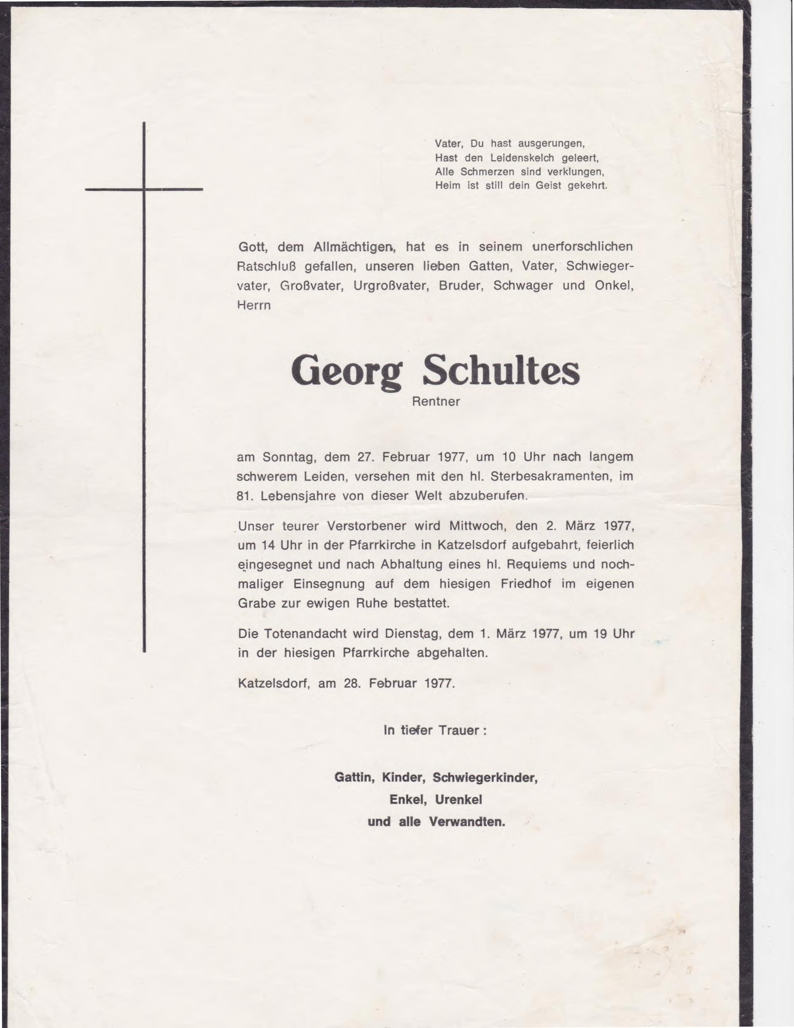 2 Schultes Georg Hauptstraße 2 - *08.04.1896 +27.02.1977 |