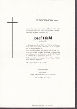 1 Wildbachweg 220 - Johannessiedlung 6 Poysdorf - *07.02.1920 +01.01.1977 |