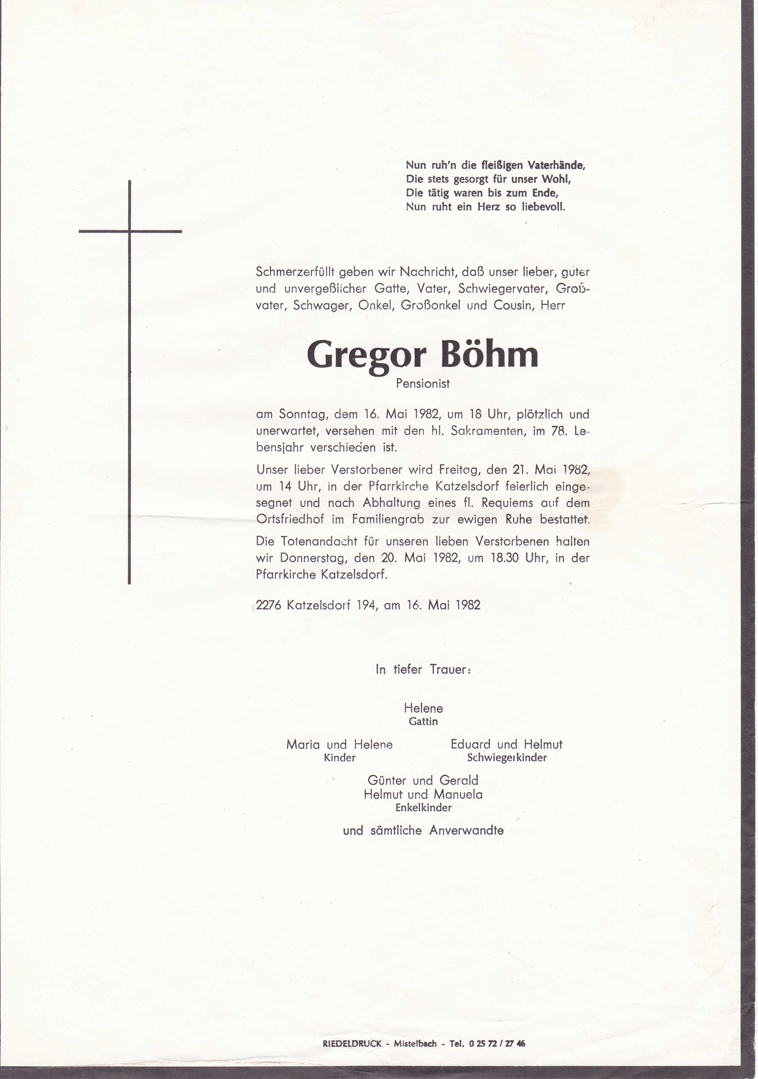 8 Bachzeile 230 Katzelsdorf - Bahnstraße 463 Bernhardsthal - *25.12.1920 +23.05.1982 |