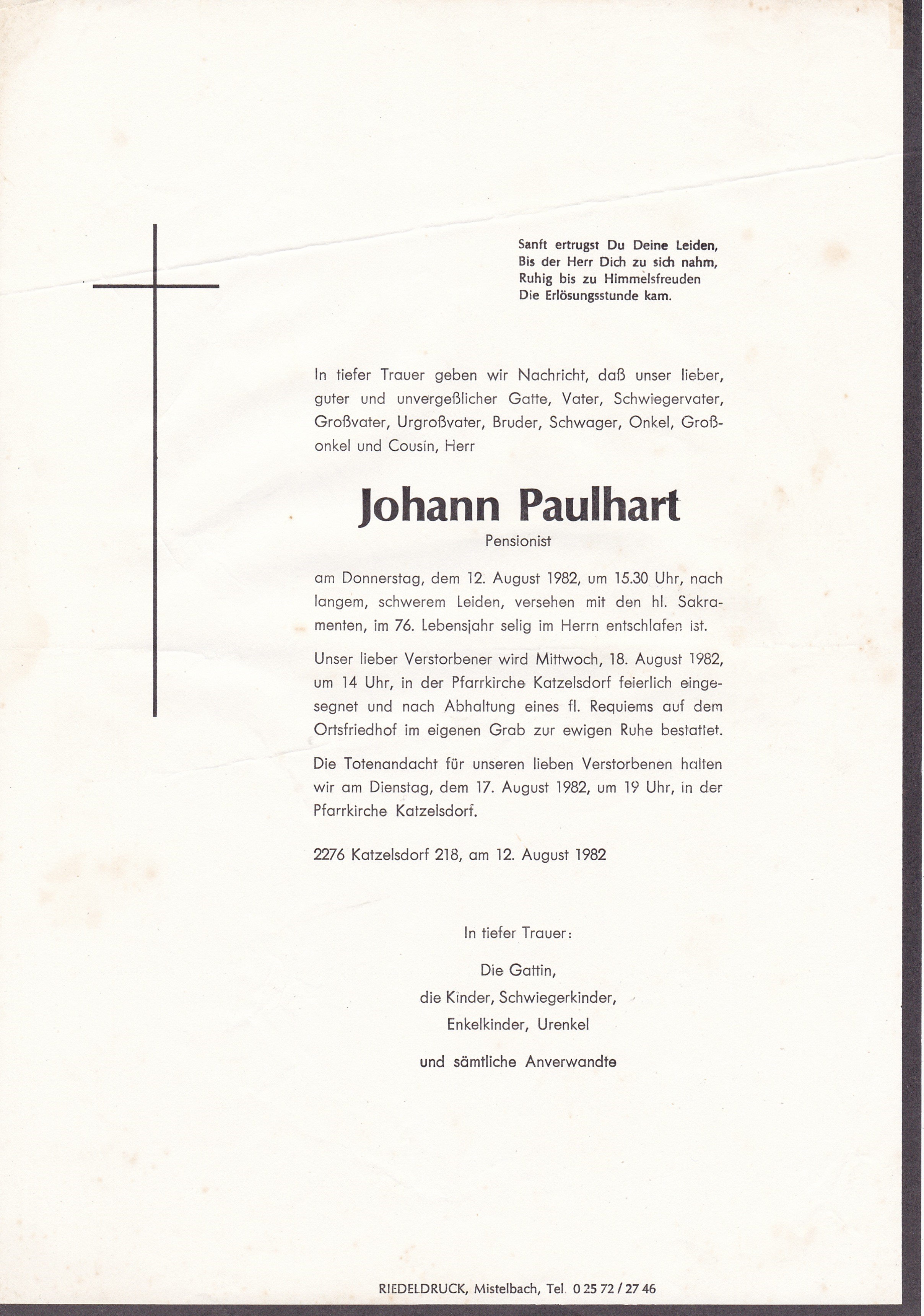 12 Verkehrsunfall Teichberg 170Katzelsdorf - Schrattenberg - *~1941 +28.08.1982 |