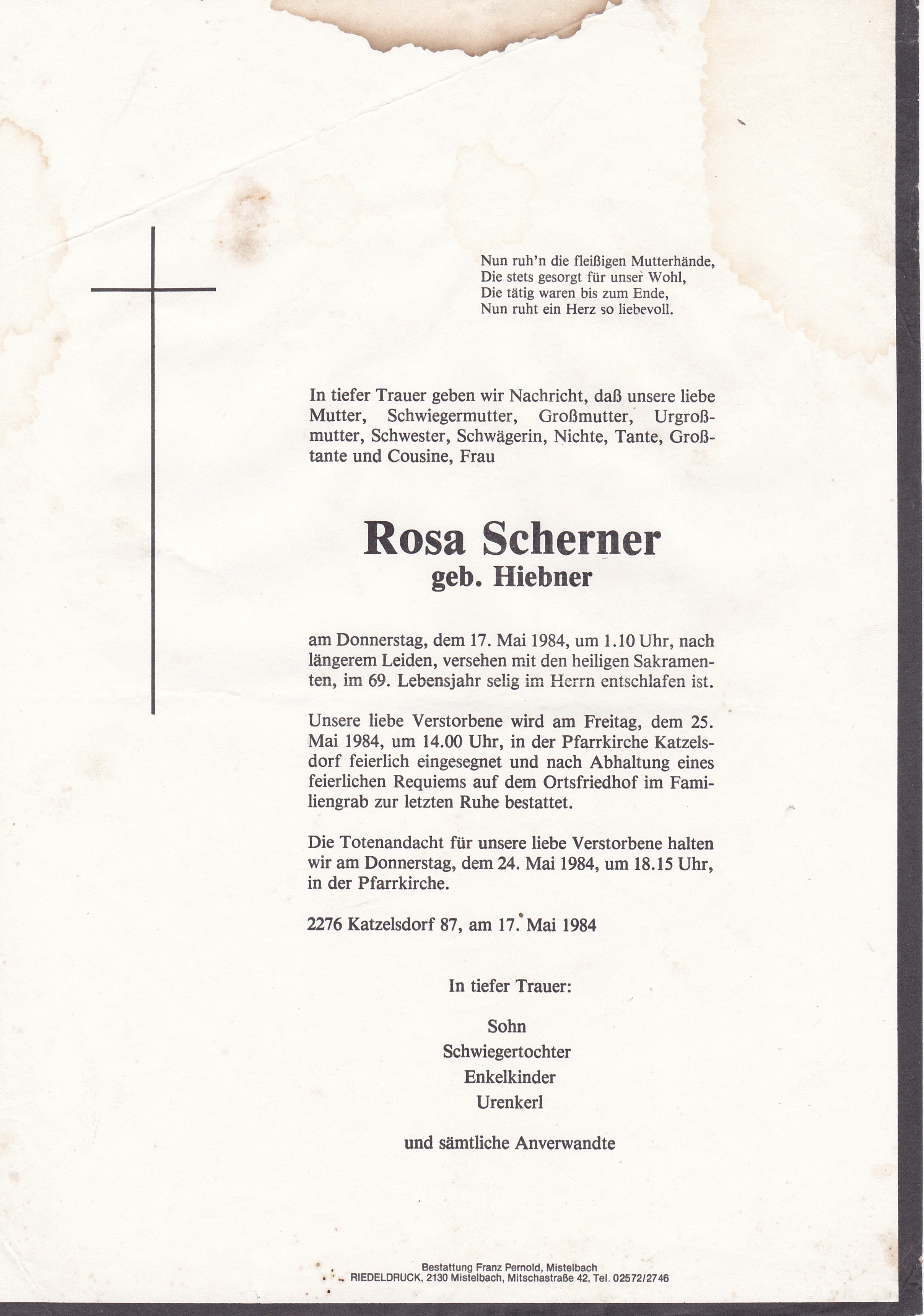 4 Hofmeister Maria (Schultes) Hauptstraße 33 - *21.12.1888 +24.02.1984 |