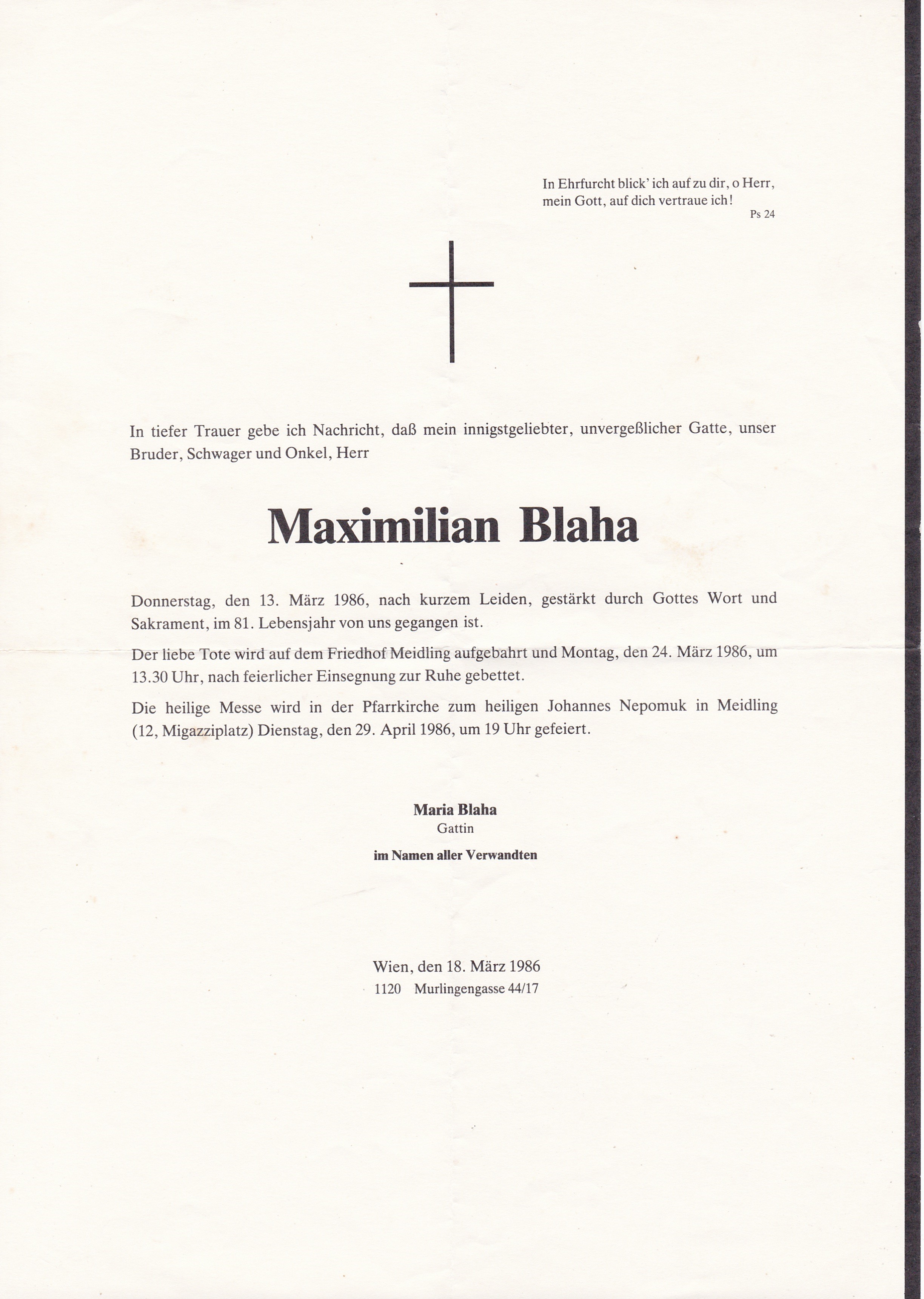 9 Paulhart vw (Schitz) Bahngasse 463 Bernhardsthal - *27.09.1912 +04.08.1986 |