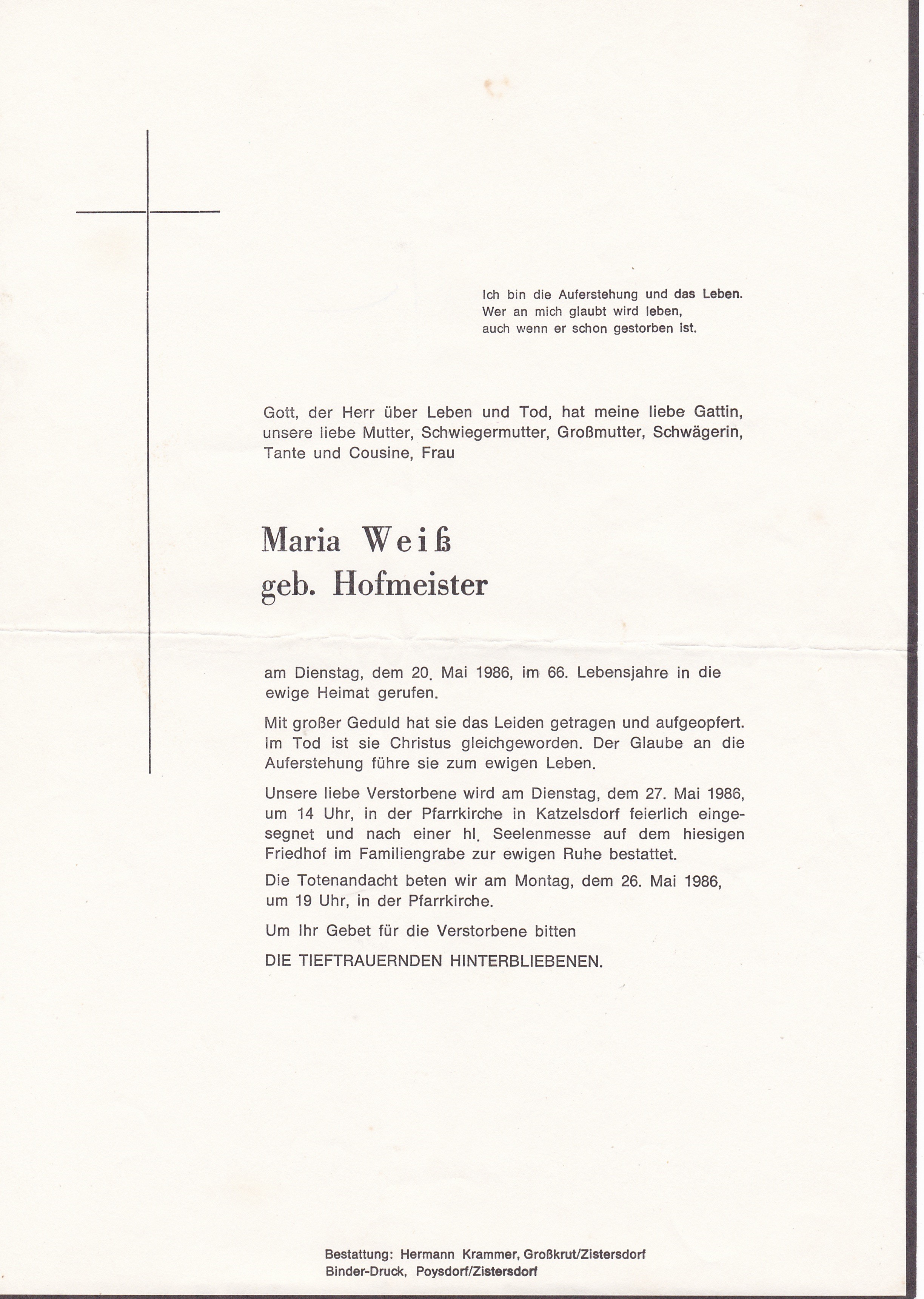 6 Hofsaß Maria (Hofmeister) Hauptstraße 33 - *31.08.1925 +27.06.1986 |