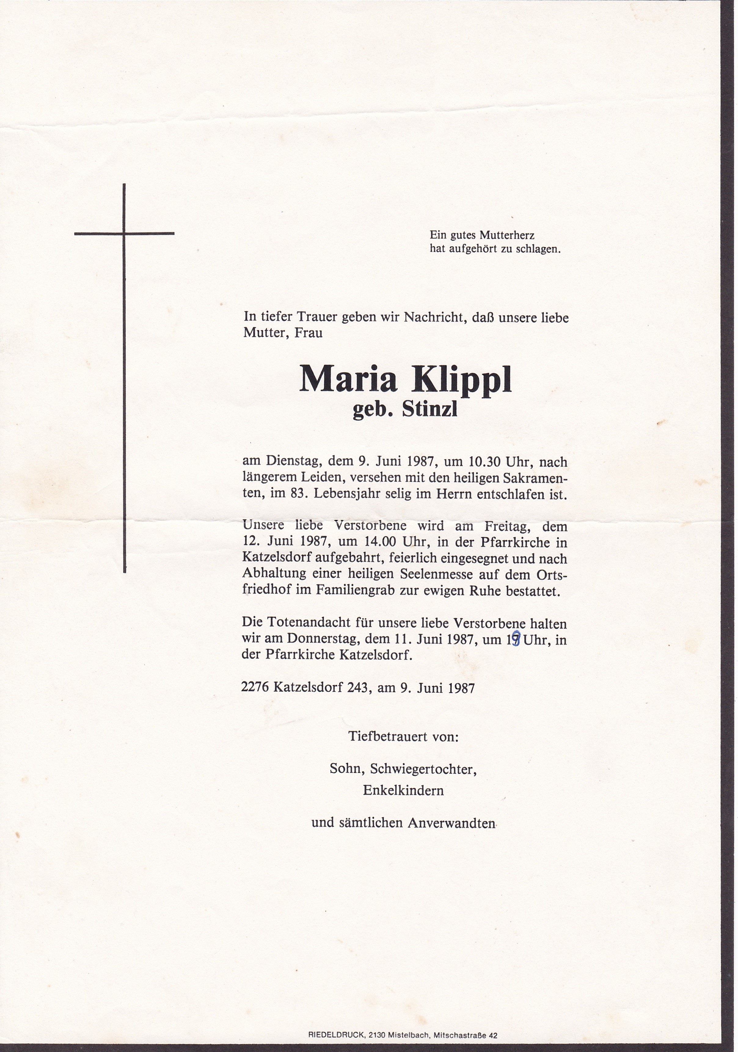 6 (Klippl) Teichberg 186 - *20.12.1912 +03.07.1987 |