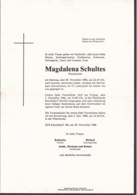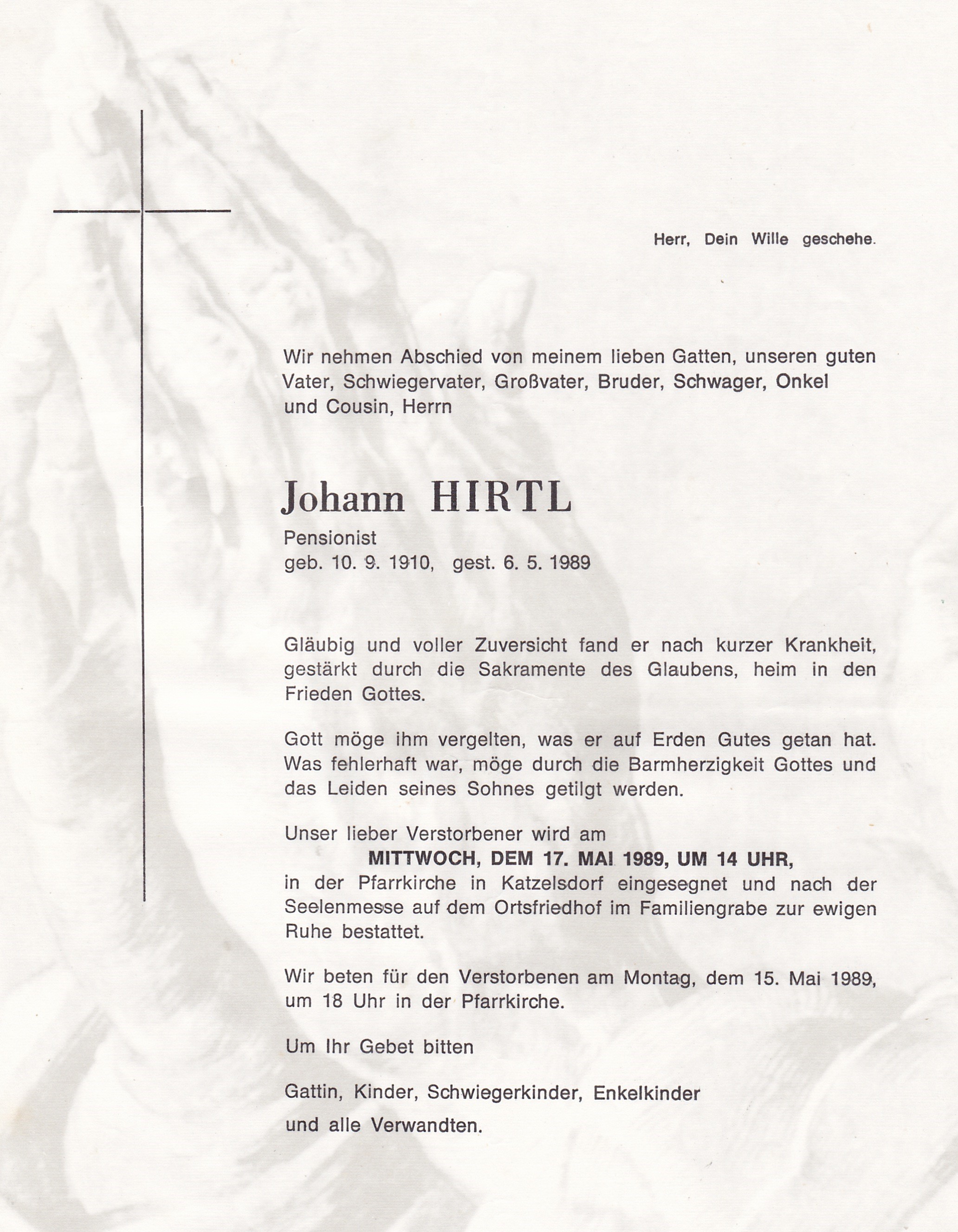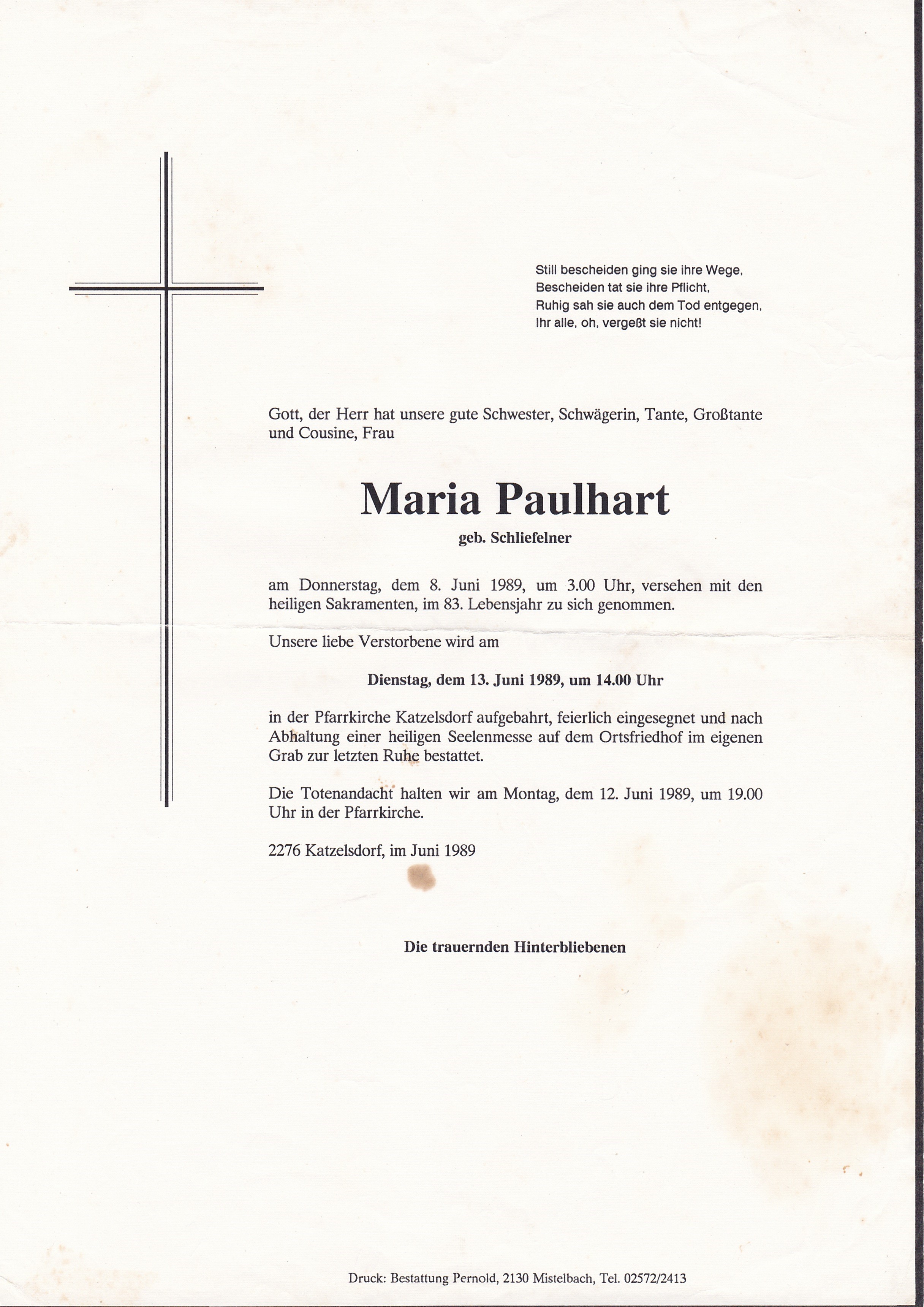 1 Hiebner Maria (Scherner) Mühlbachweg 180 - *22.10.1910 +03.04.1989 |