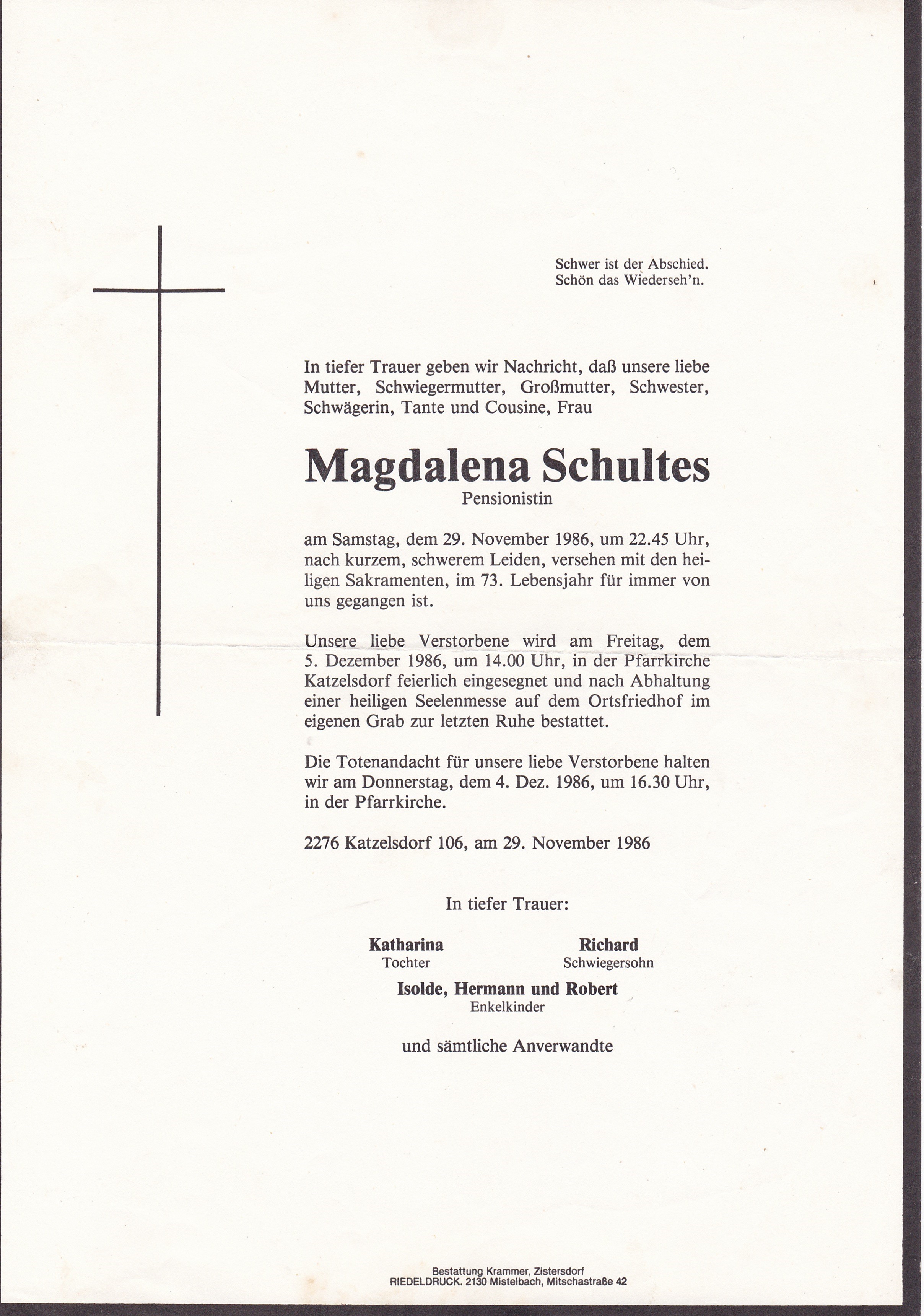 5 Katzelsdorf - Bahnstraße 449 2275 Bernhardsthal - *02.03.1916 +23.10.1989 |
