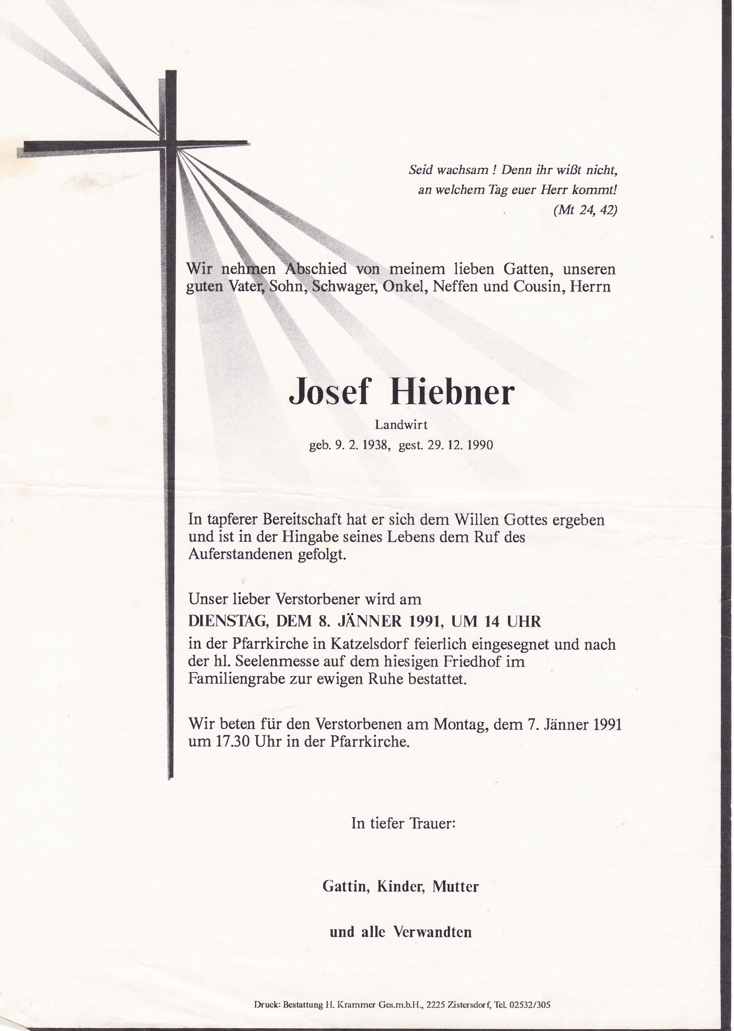 14  Hiebner Josef Hauptstraße 59 - *09.02.1938 +29.12.1990 |