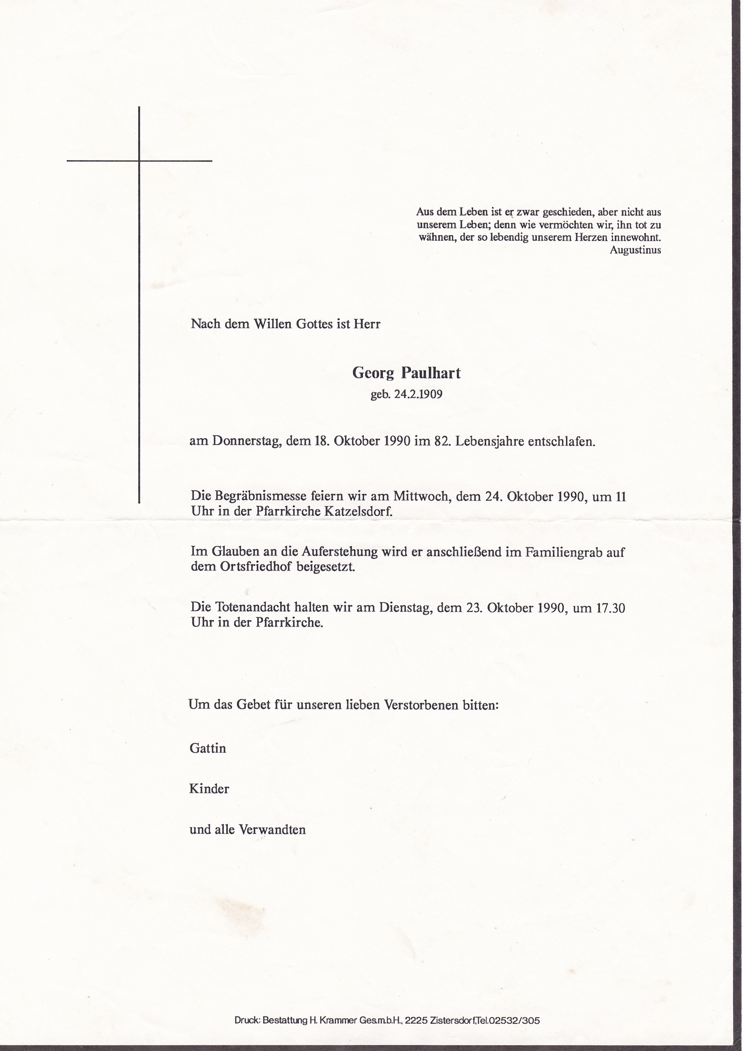 10  Paulhart Georg Bachzeile 239 - *24.02.1909 +18.10.1990 |