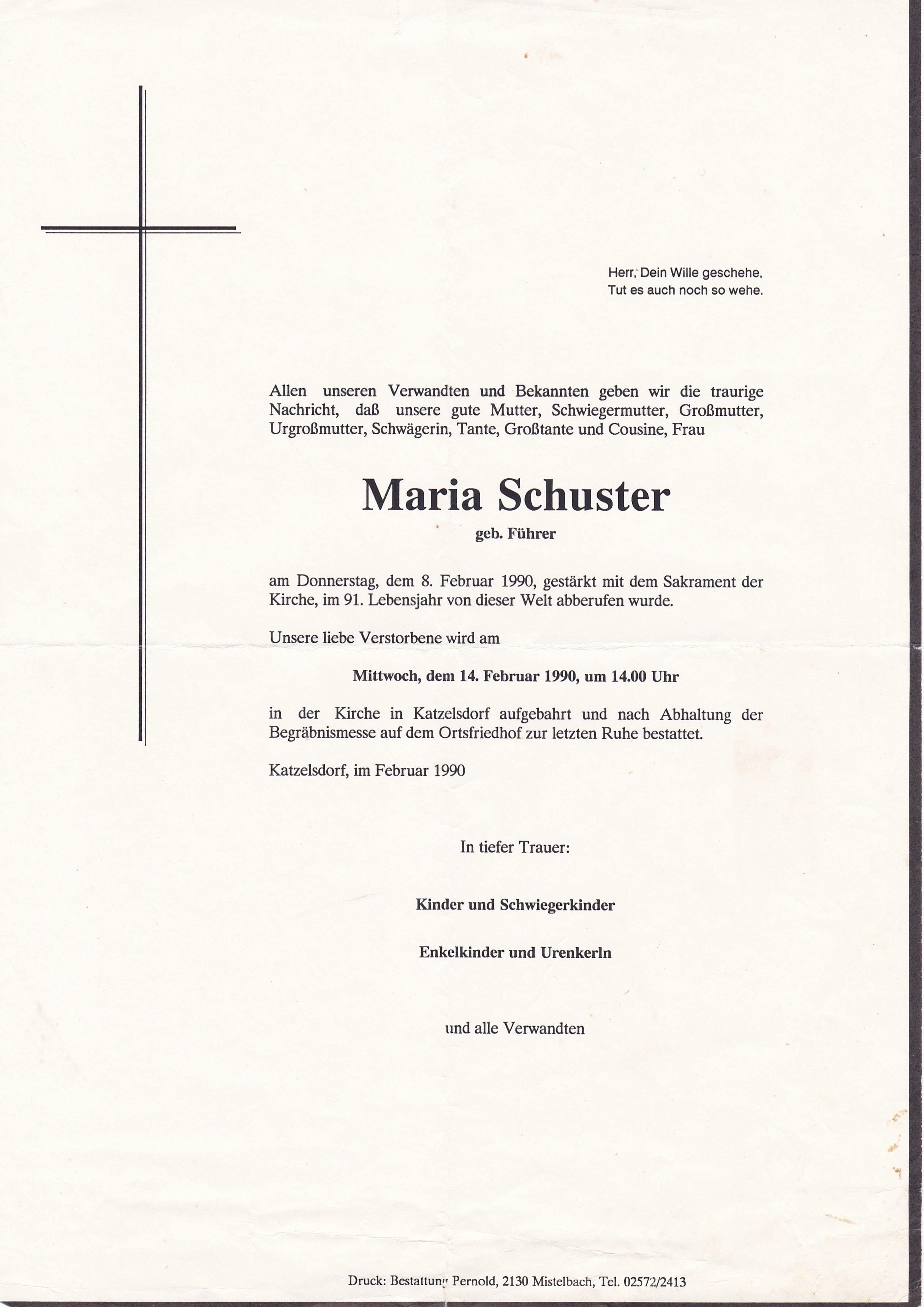 2  Schuster Maria(Führer) Teichberg 201 - *07.09.1899 +08.02.1990 |