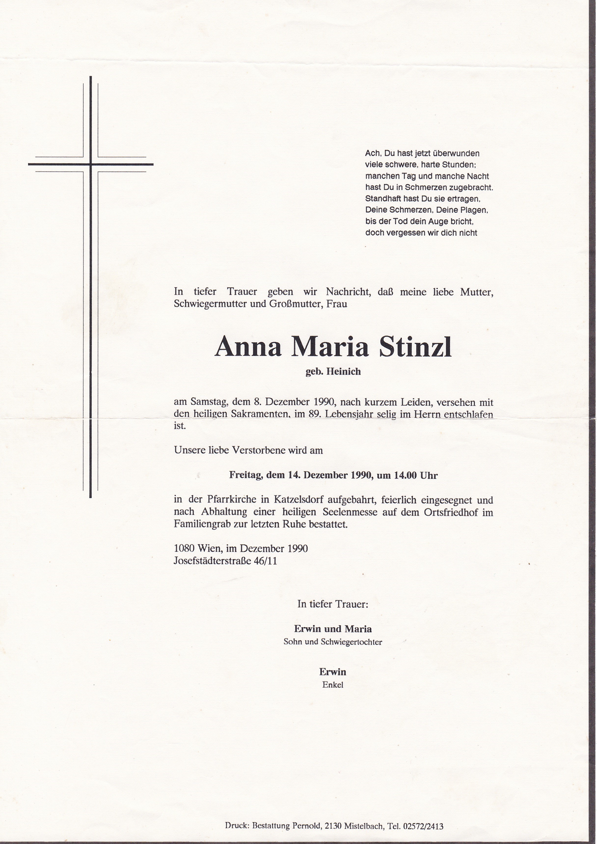 12  Stinzl Anna Maria(Heinich) Radschin 222 - *08.06.1902 +08.12.1990 |