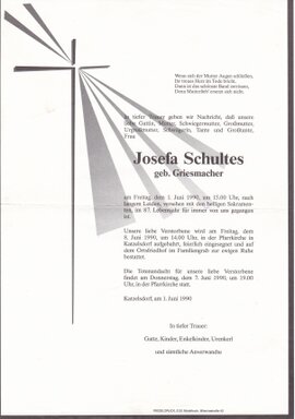 5  Schultes Josefa (Griesmacher) - *25.02.1904 +01.06.1990 |