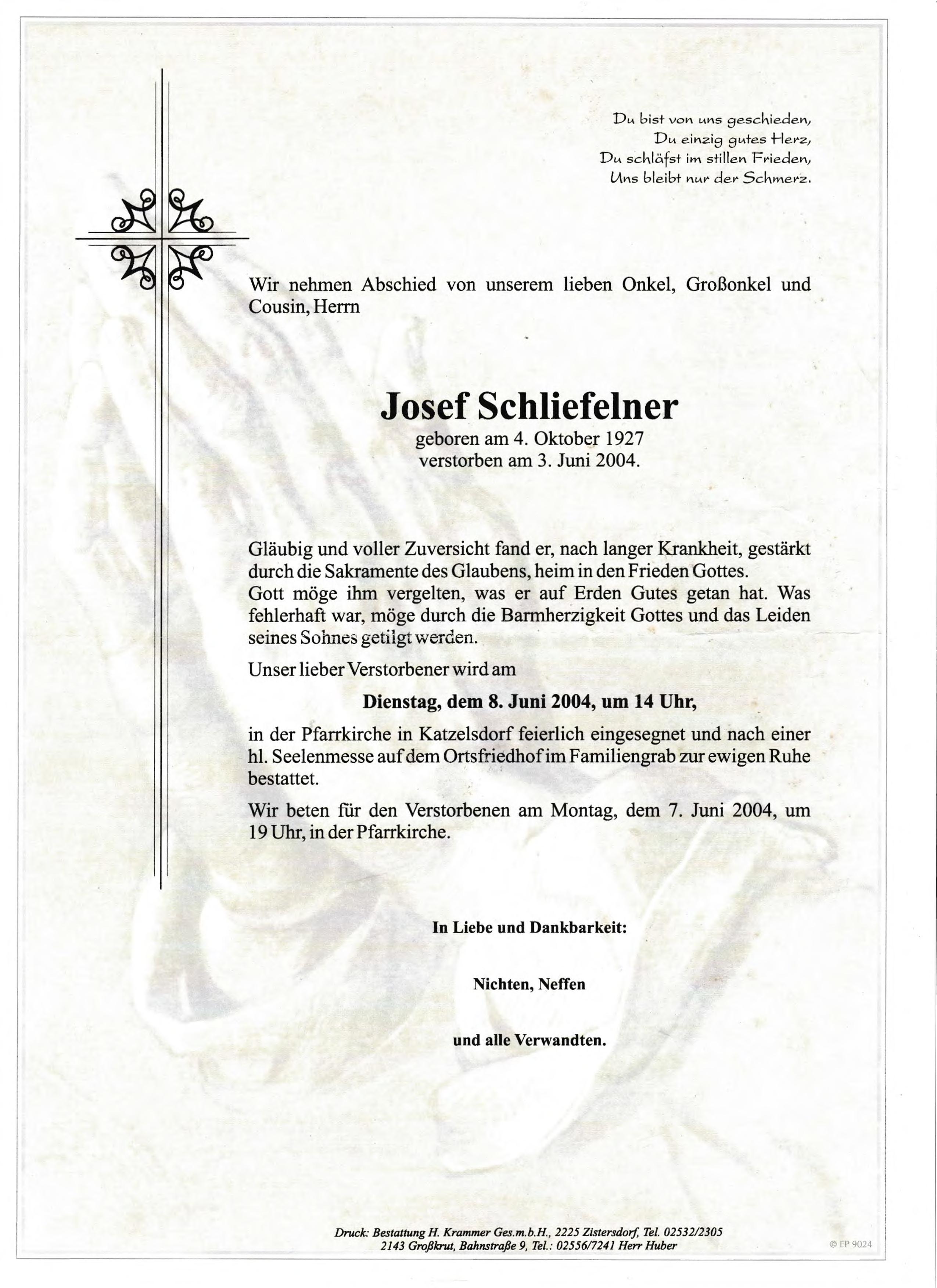 7 Hauptstraße 18 Katzelsdorf - Bernhardsthal 60 - *25.04.1914 +27.07.2004 |