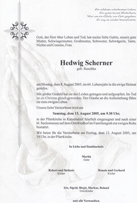 10 Hauptstraße 10 Katzelsdorf - 2130 Mistelbach - *20.02.1929 +17.09.2005 |
