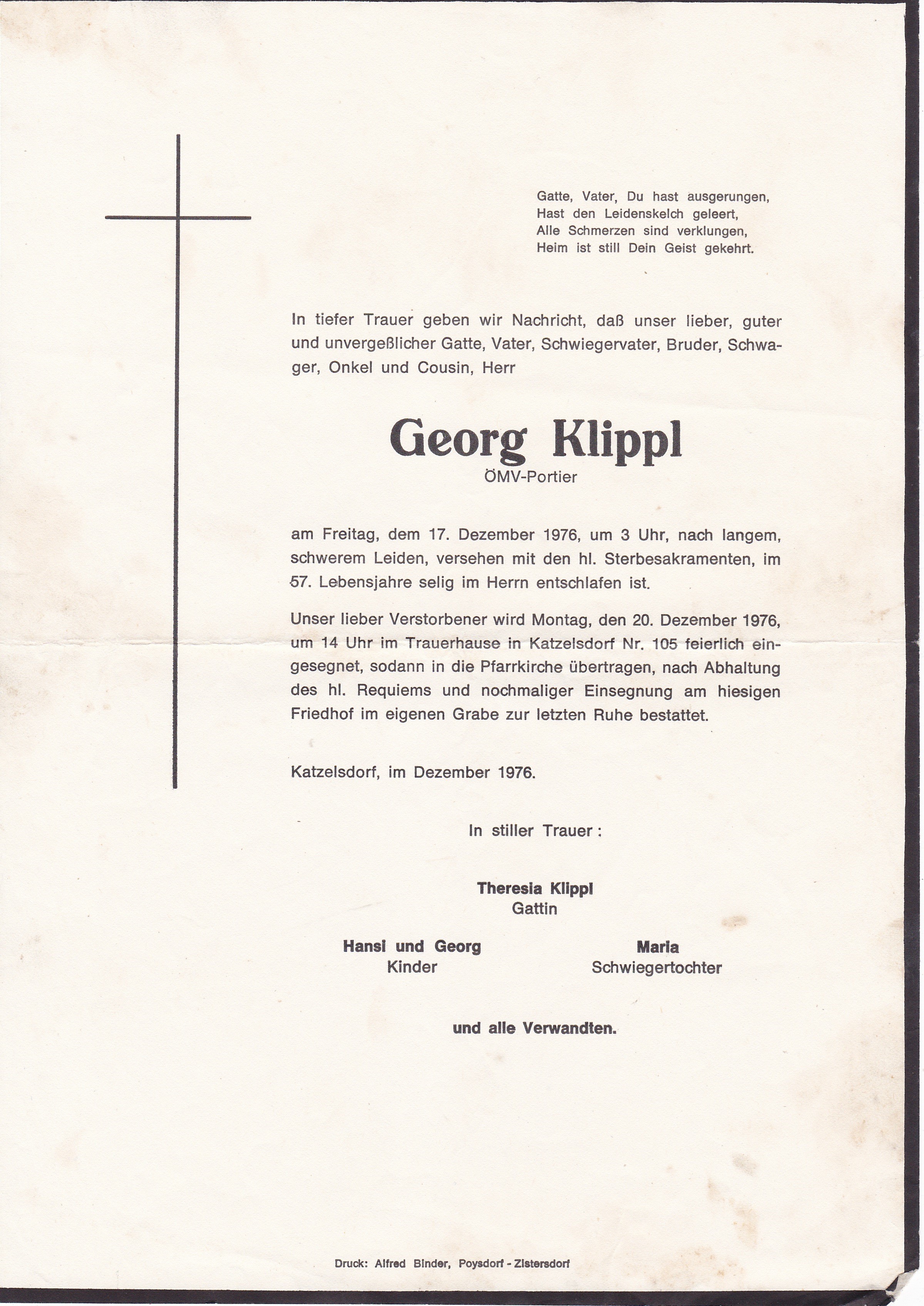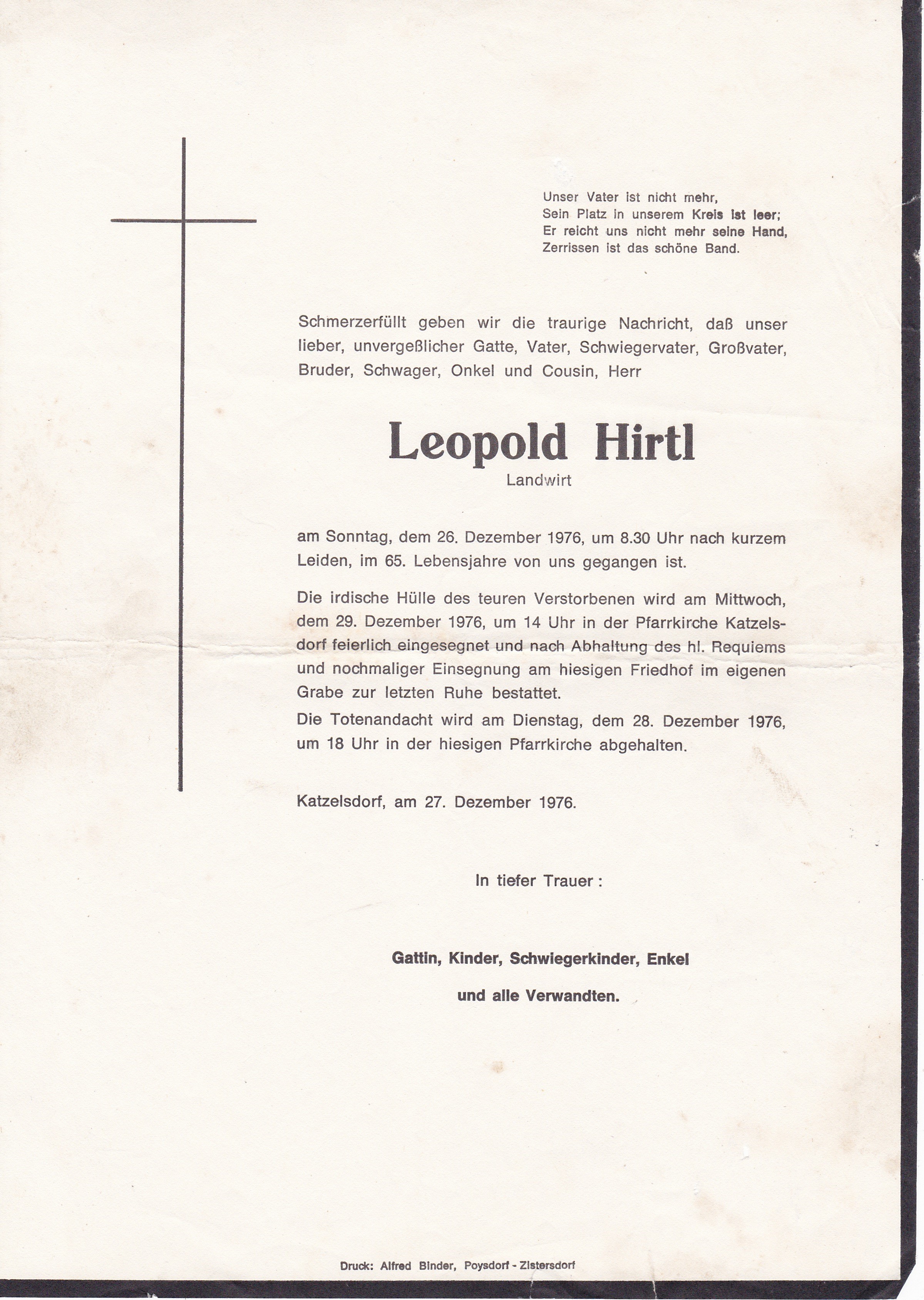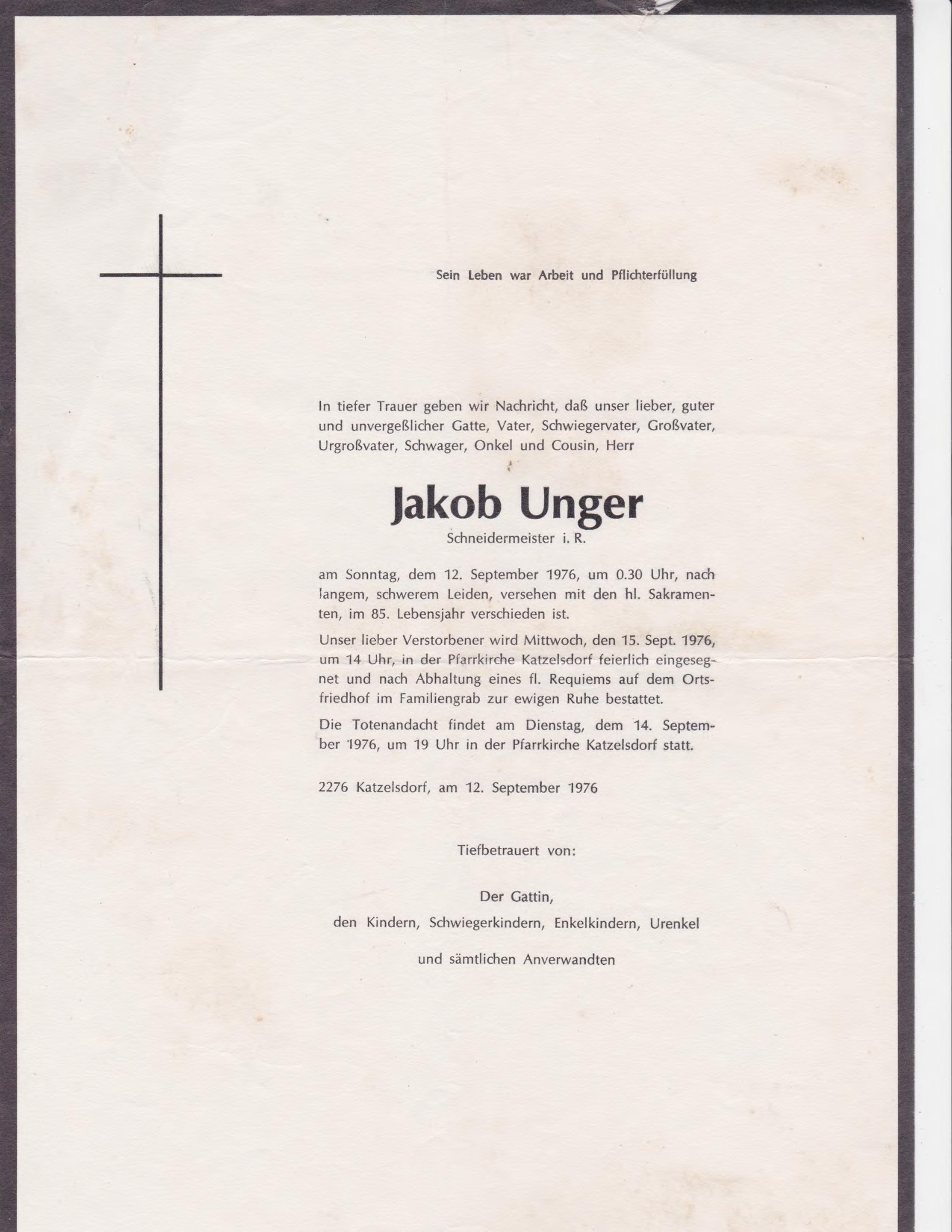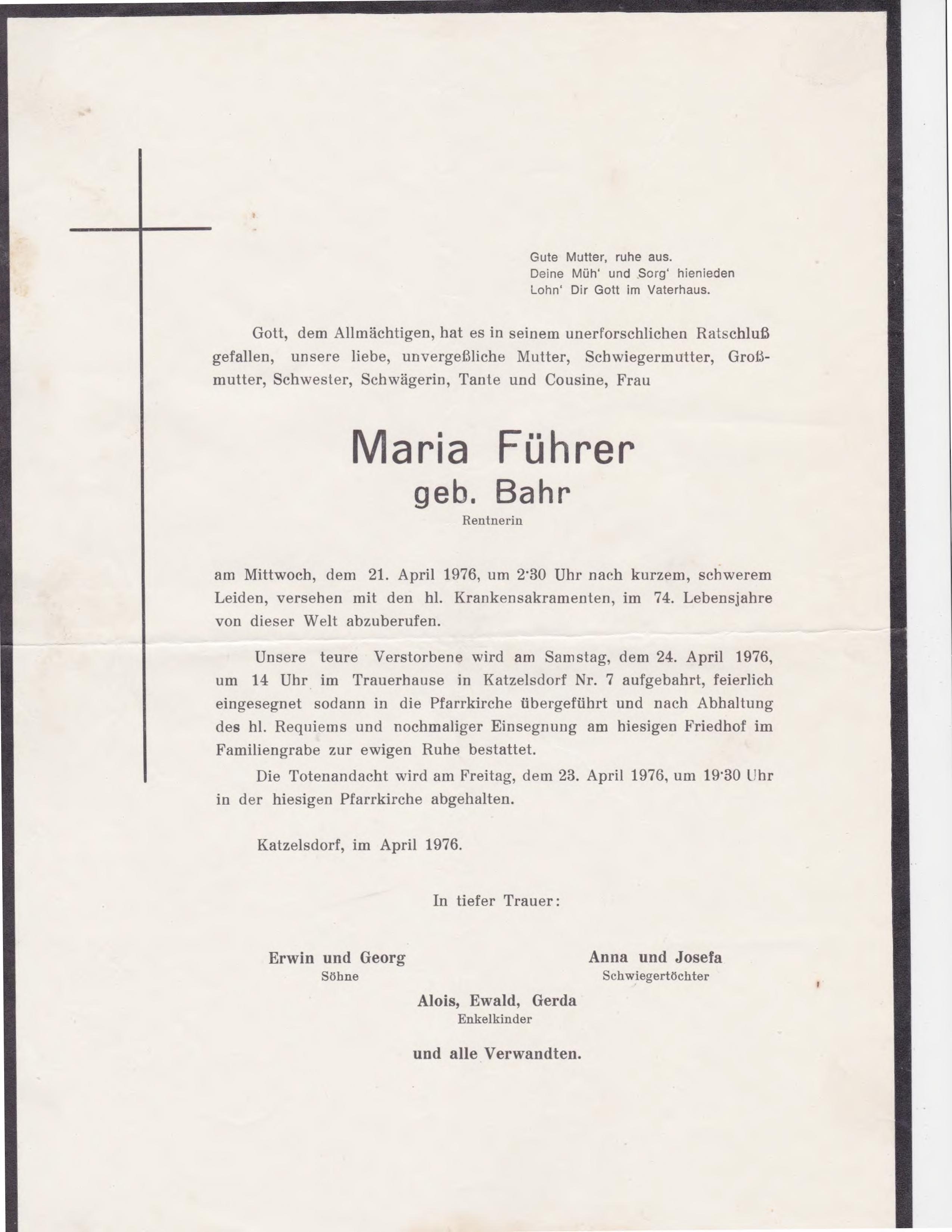 3 Radschin 74 Katzelsdorf - 2231 Straßhof - *05.04.1899 +01.04.1976 |