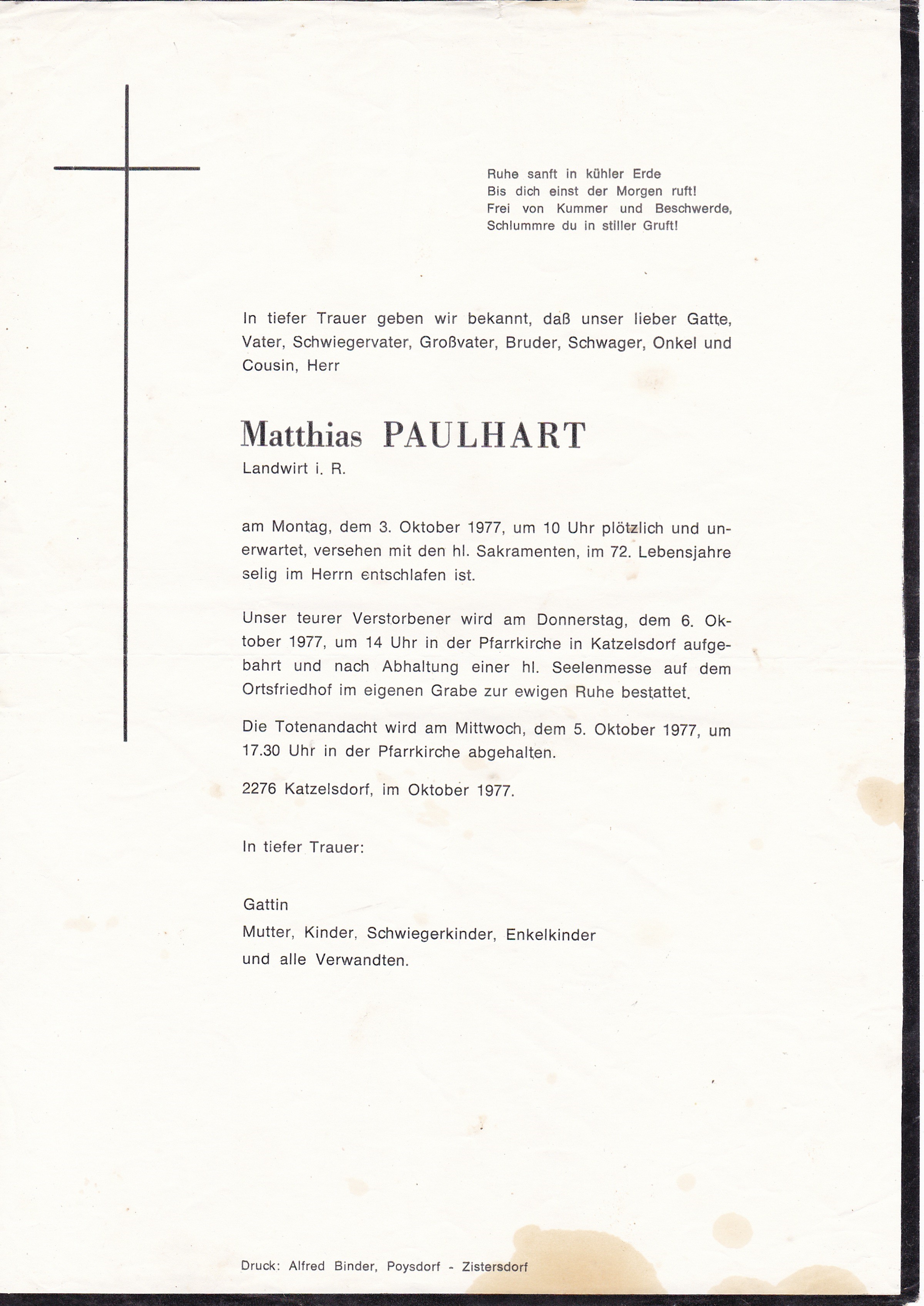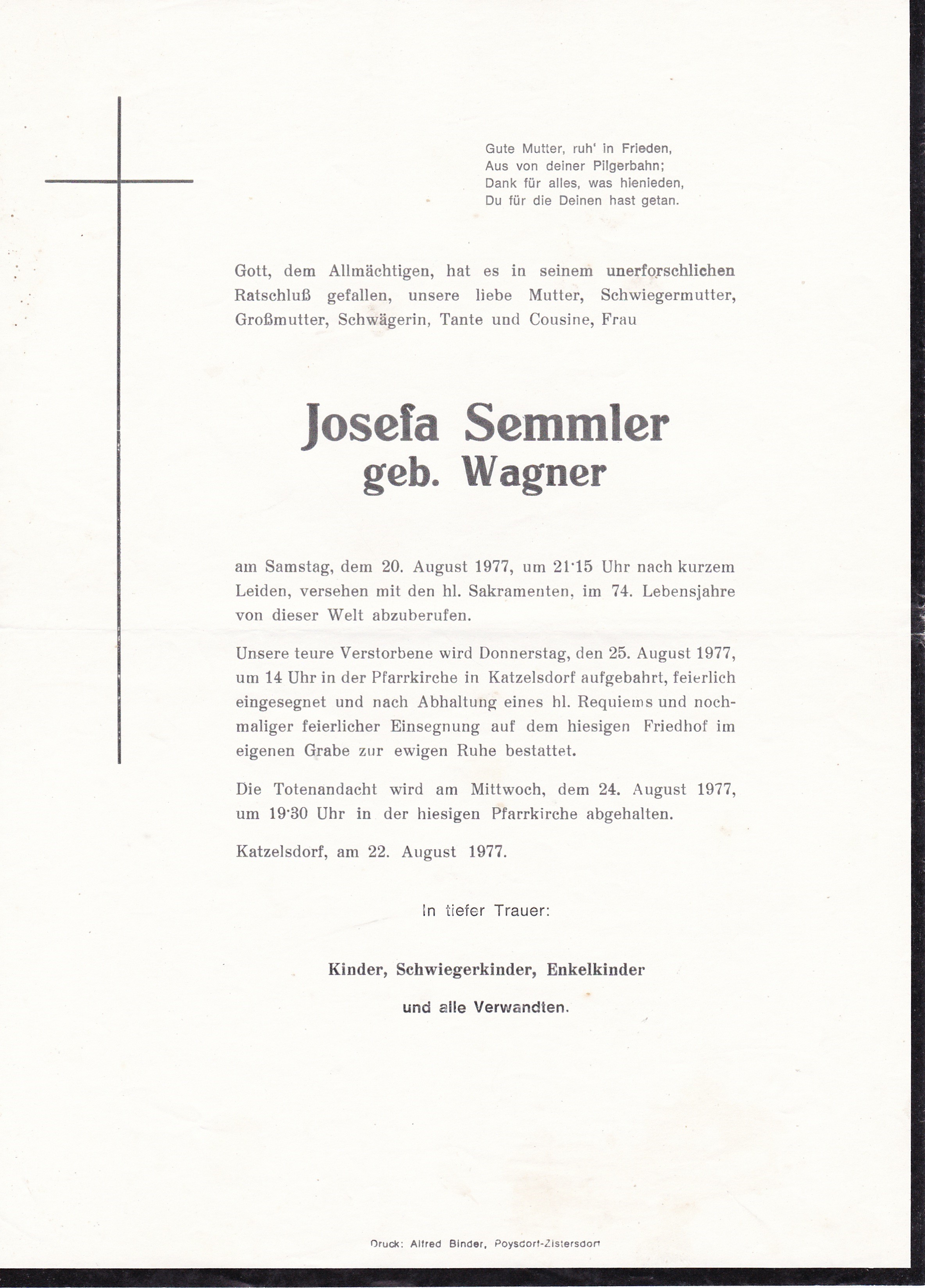 1 Wildbachweg 220 - Johannessiedlung 6 Poysdorf - *07.02.1920 +01.01.1977 |
