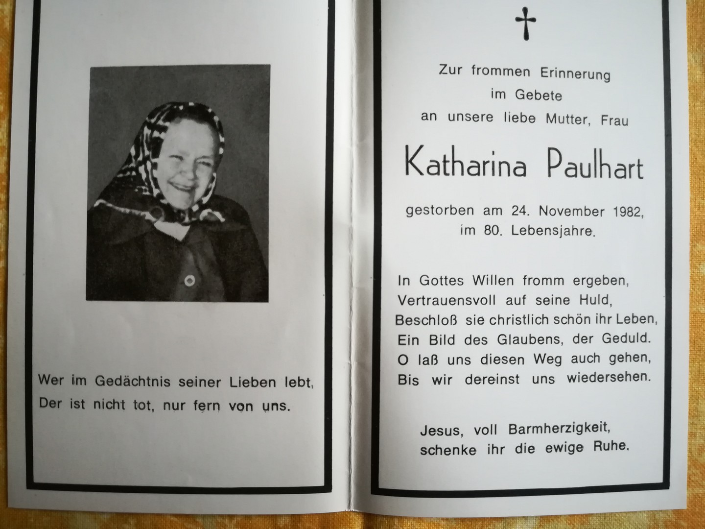 2 Hofmeister Maria (Paulhart) Hauptstraße 71 - *06.08.1909 +23.01.1982 |