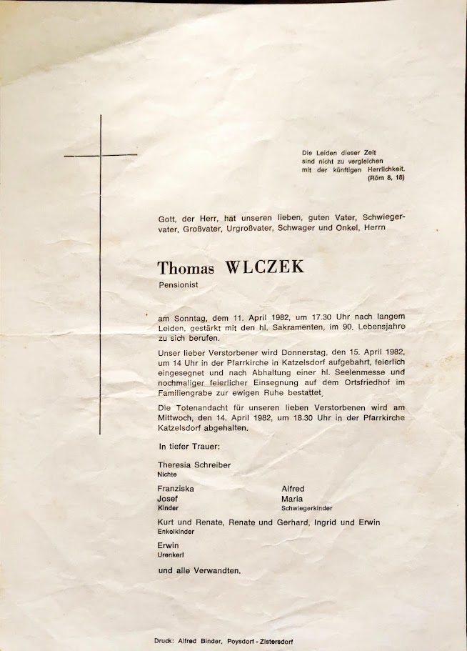 12 Verkehrsunfall Teichberg 170Katzelsdorf - Schrattenberg - *~1941 +28.08.1982 |