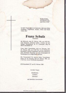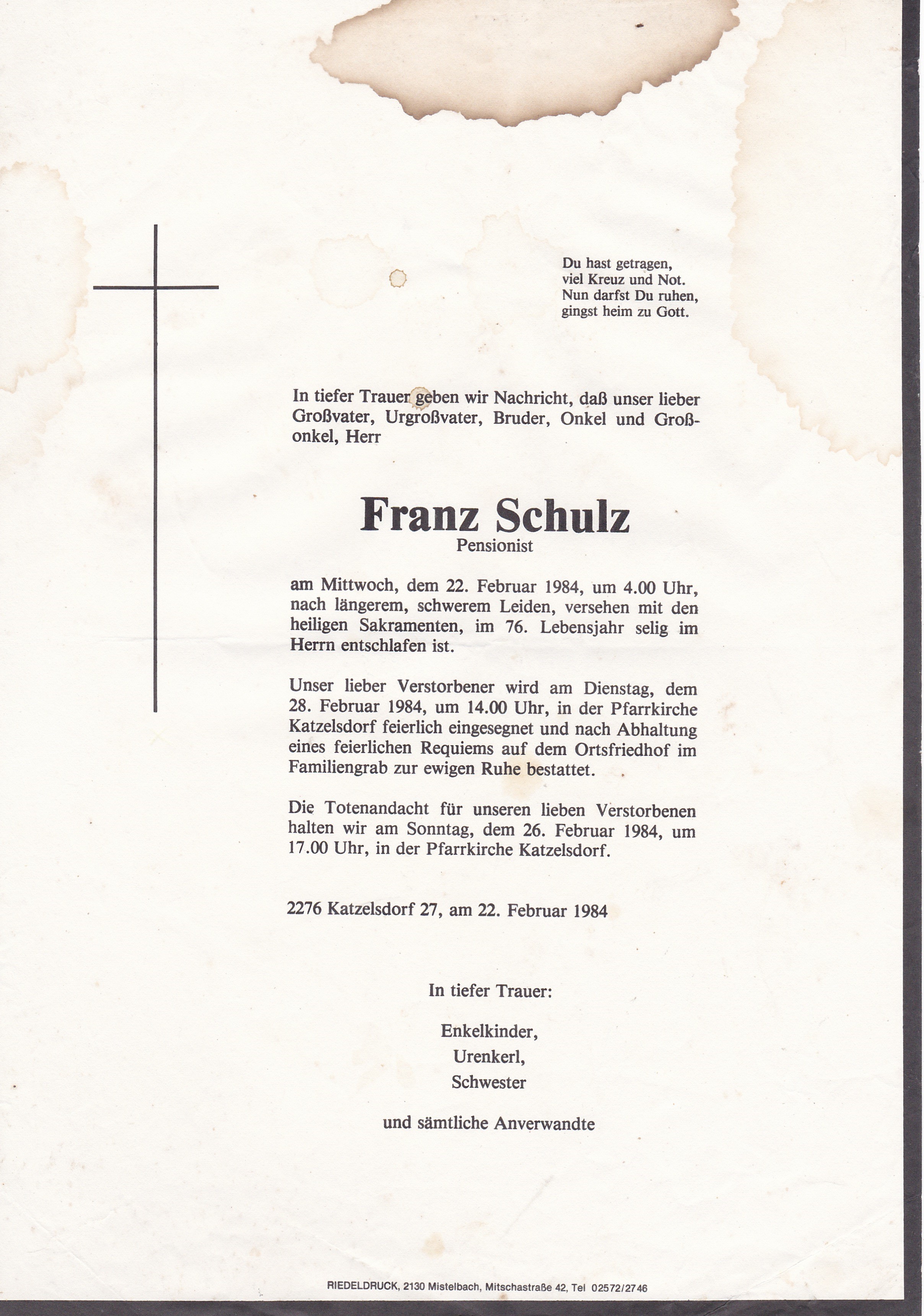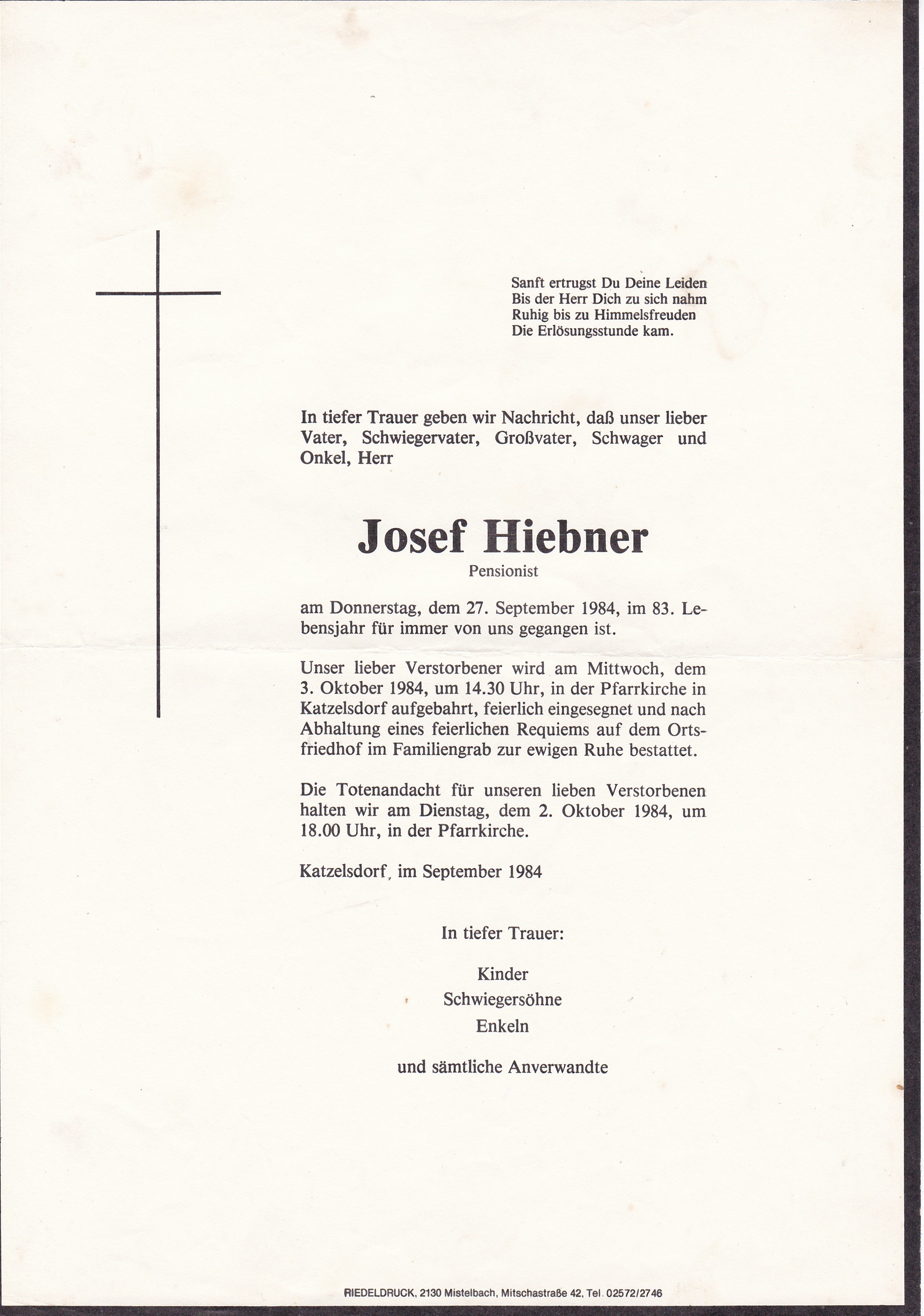 8 Feuchtenhofer Ernst Pfarrer Hauptstraße 73 - *03.01.1931 +21.05.1984 |