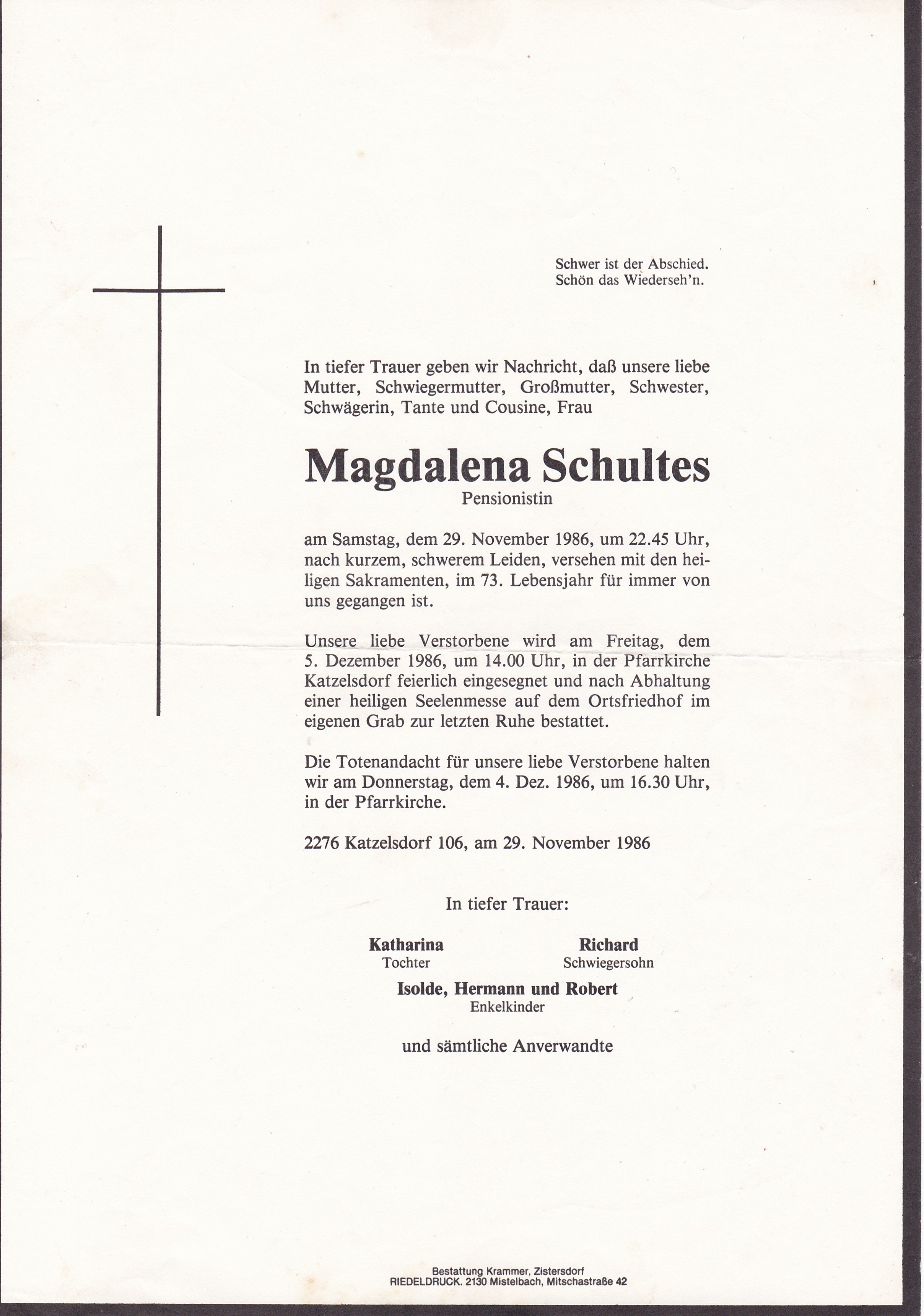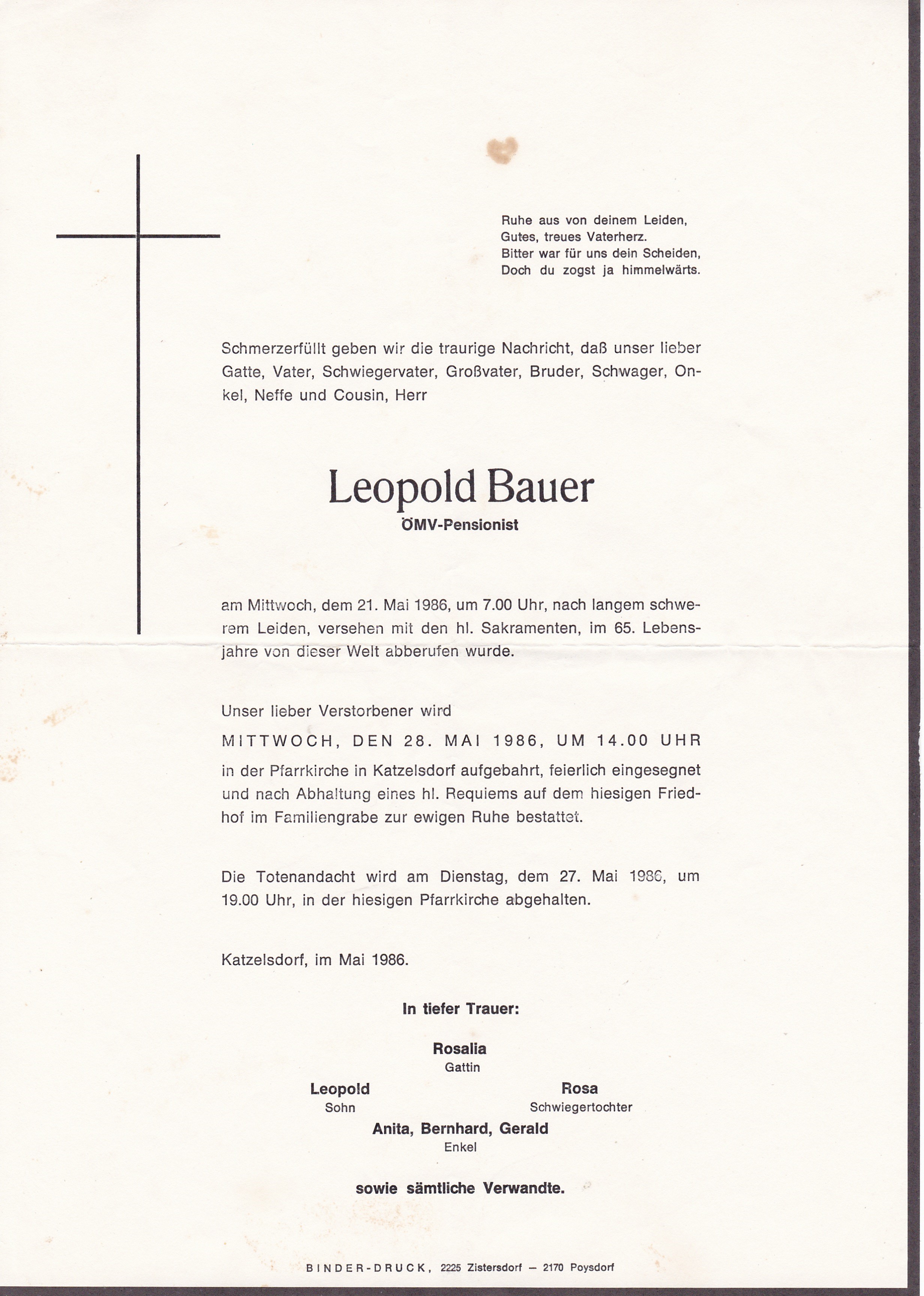 9 Paulhart vw (Schitz) Bahngasse 463 Bernhardsthal - *27.09.1912 +04.08.1986 |