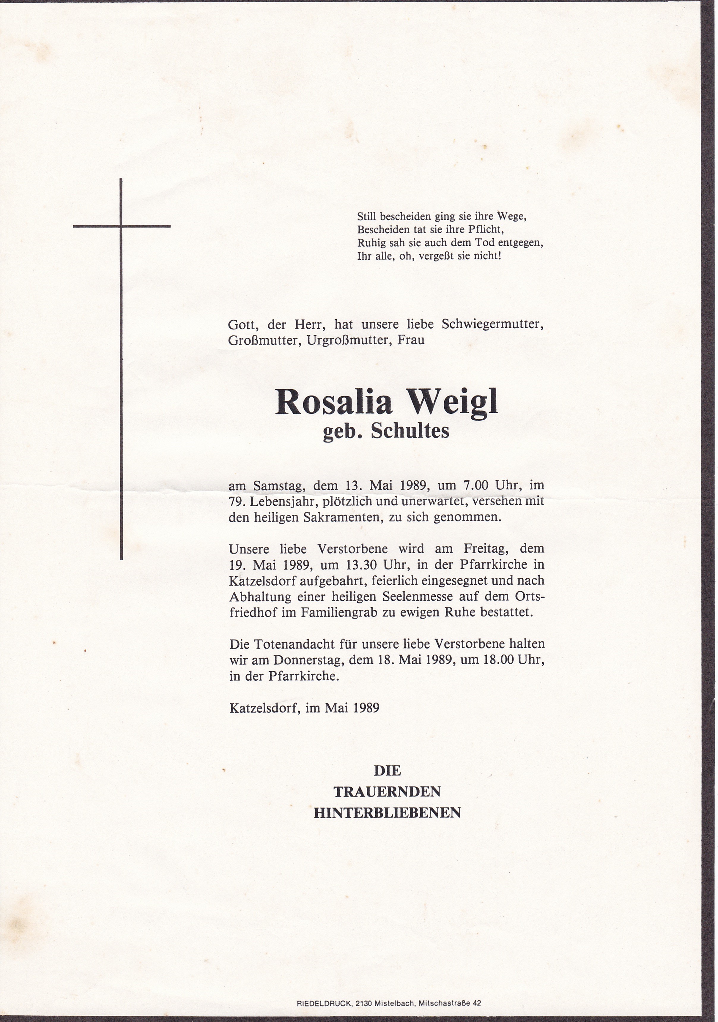 5 Katzelsdorf - Bahnstraße 449 2275 Bernhardsthal - *02.03.1916 +23.10.1989 |