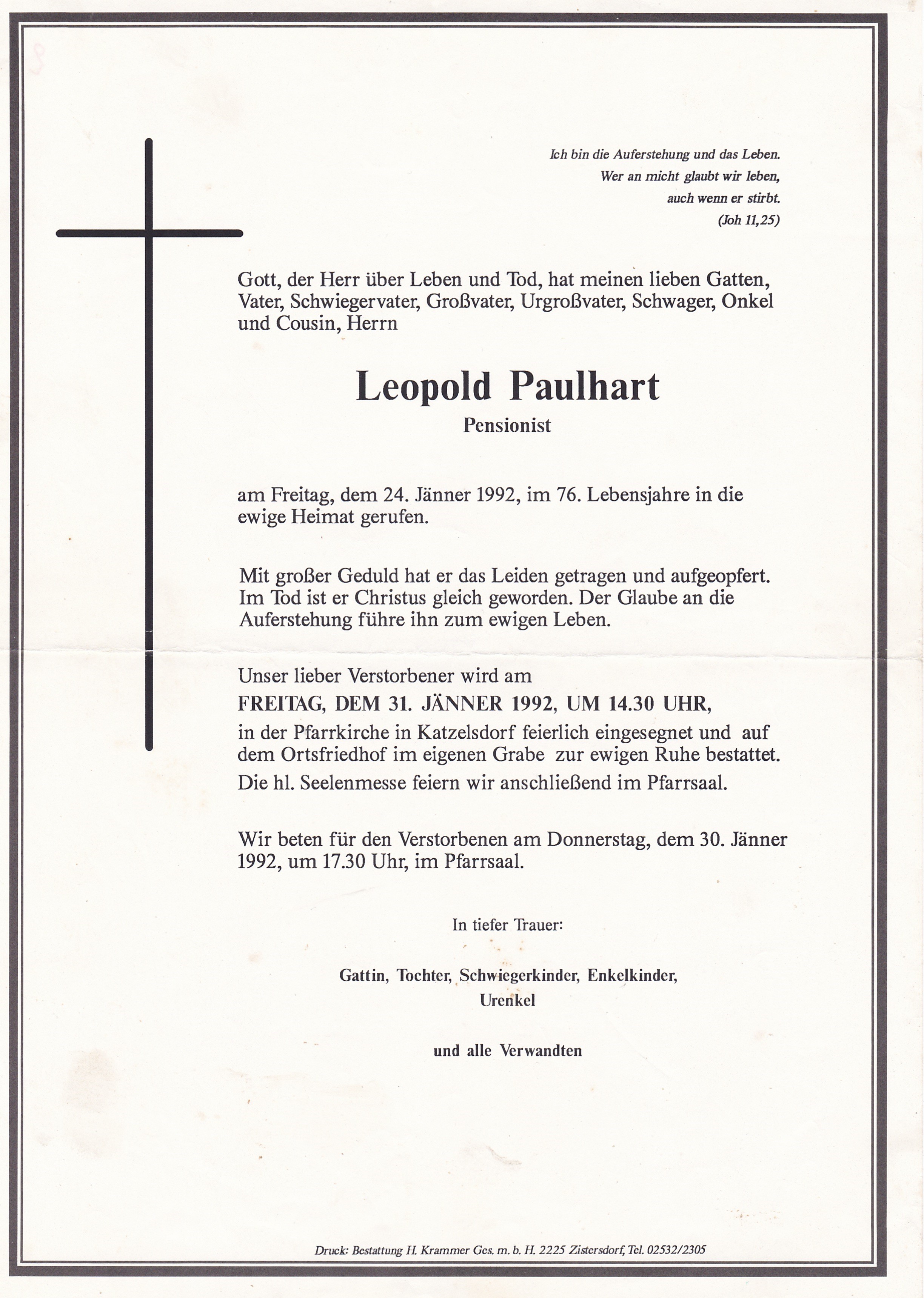 16  Paulhart Johann Hauptstraße 13 - *23.07.1913 +18.10.1992 |