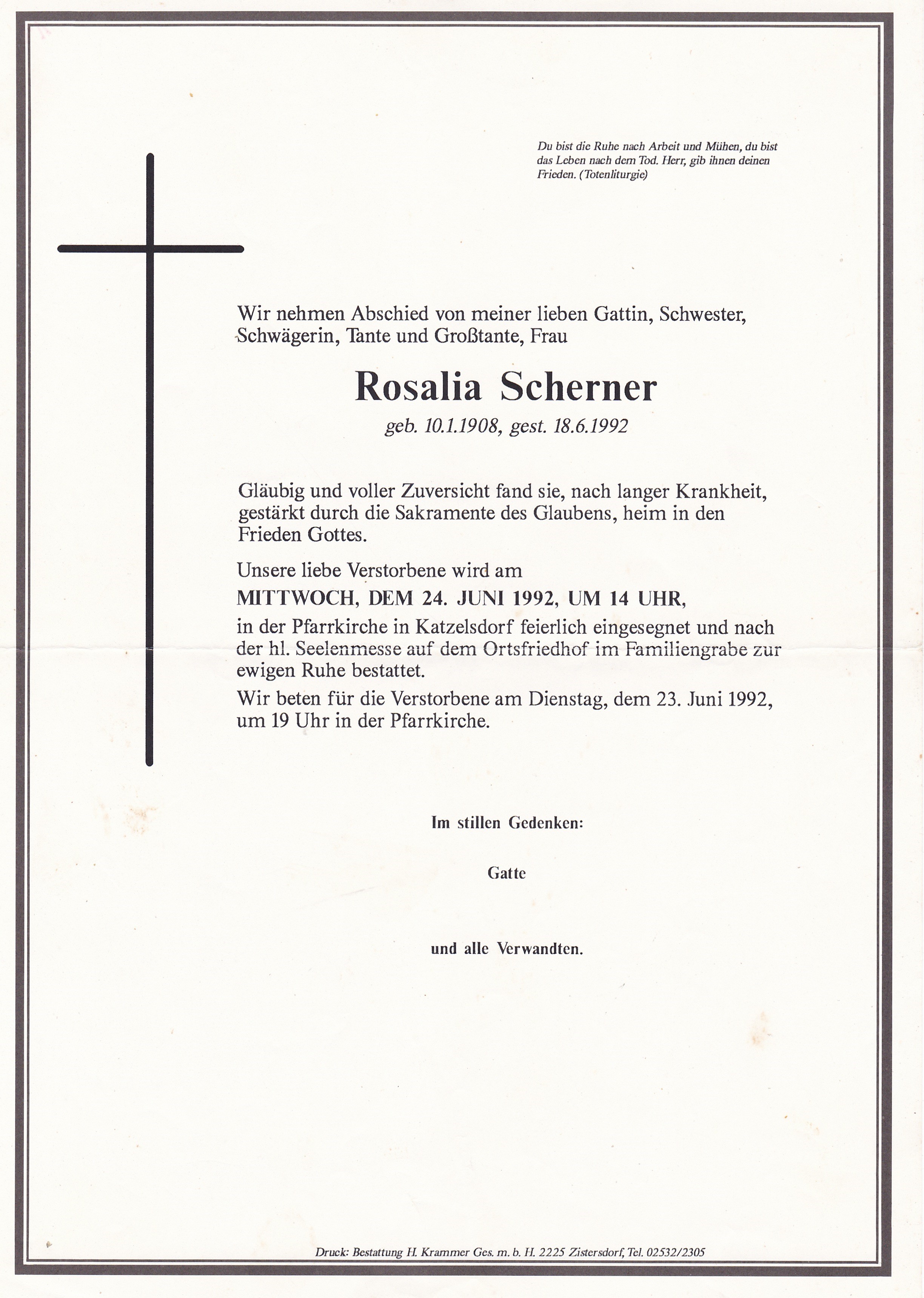 13  Scherner Rosalia (Scherner) Mühlbachweg 180 - *10.01.1908 +18.06.1992 |