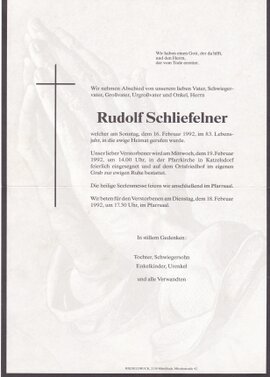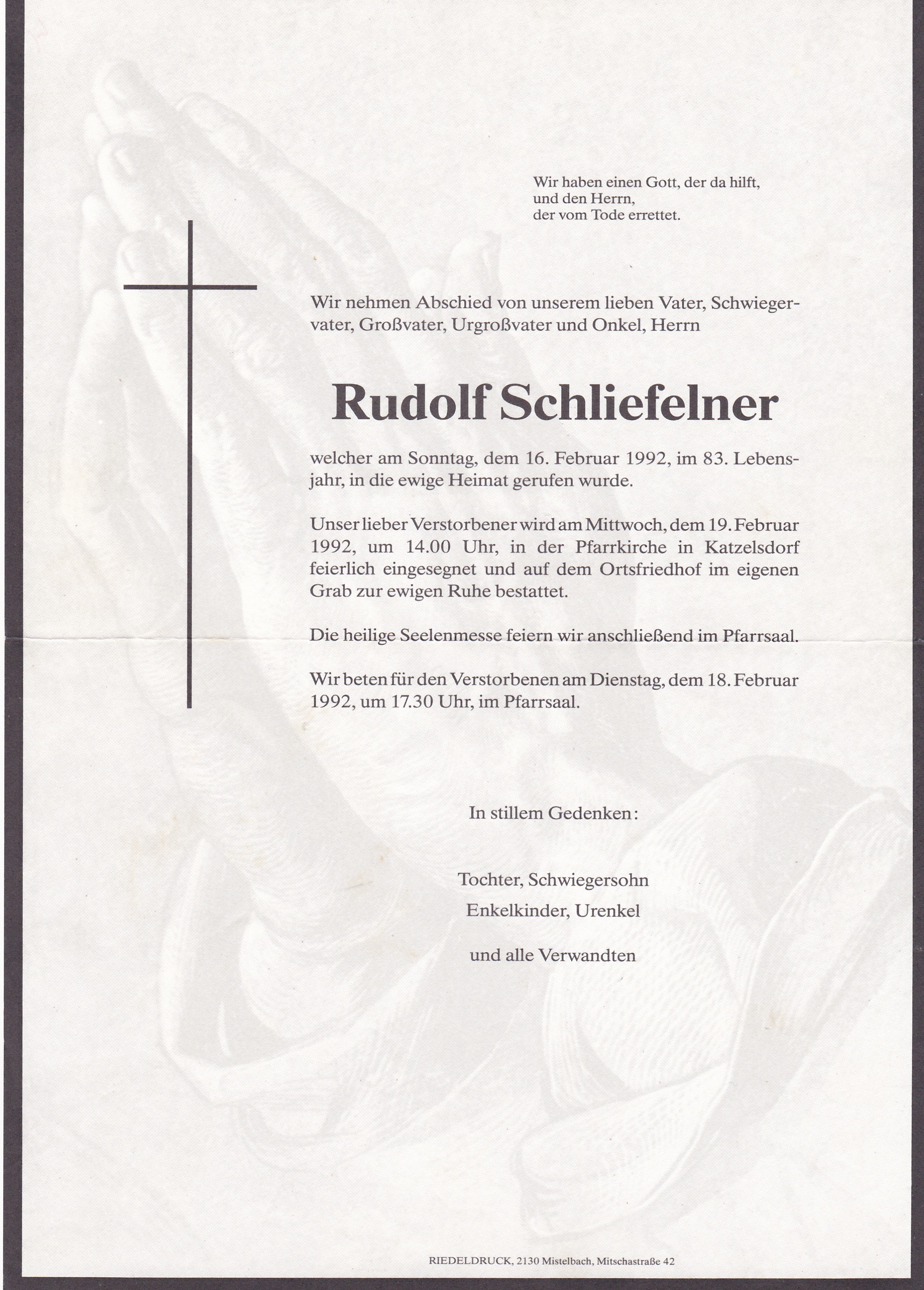 4  Schliefelner Rudolf Hauptstraße 110 - *18.04.1909 +16.02.1992 |