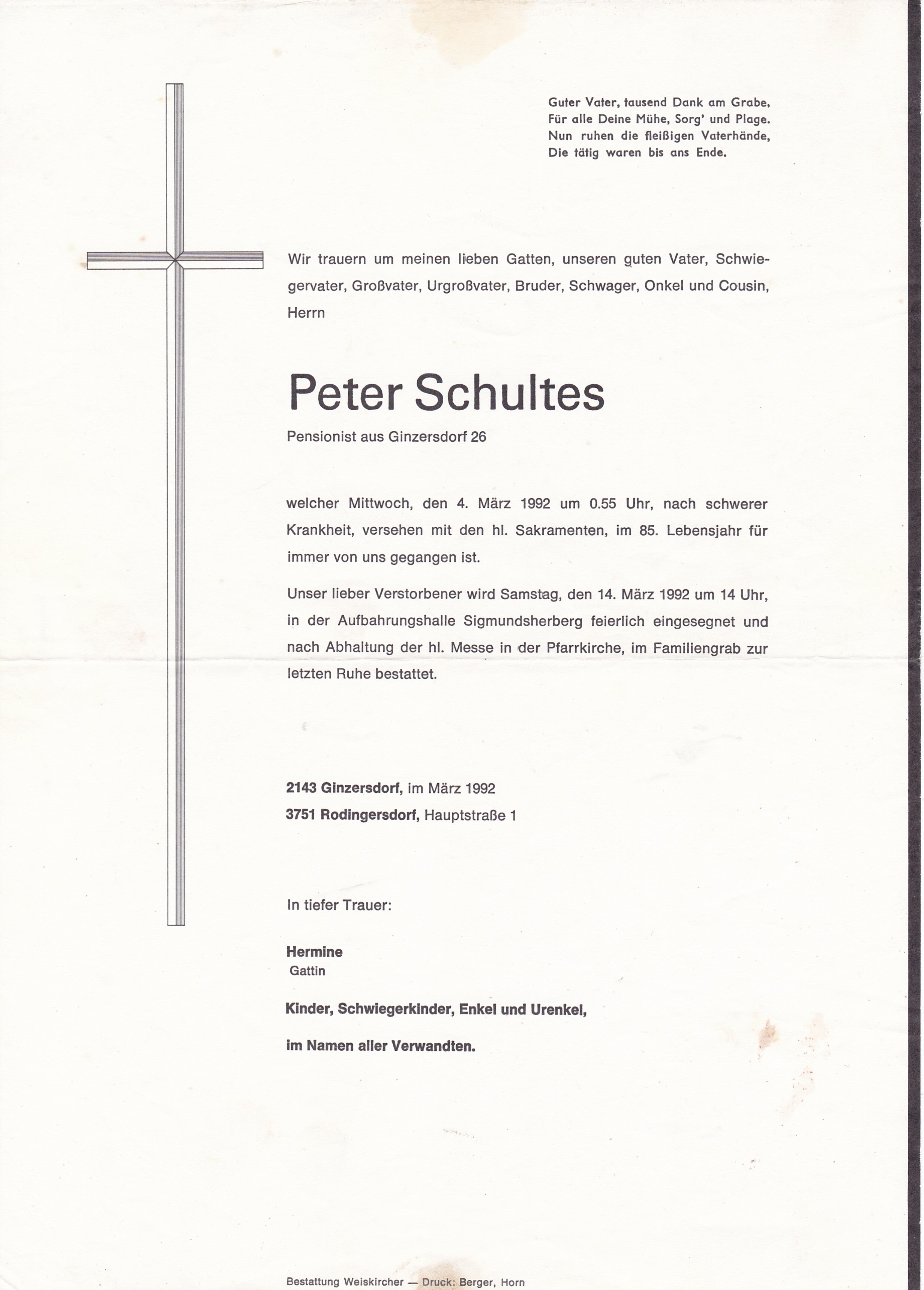 9  Schultes Peter Katzelsdorf - Ginzersdorf 26 - *~1907 +04.03.1992 |