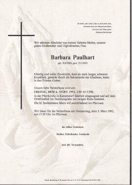 5  Paulhart Barbara(Schultes) Bachzeile 229 - *31.08.1904 +25.02.1992 |