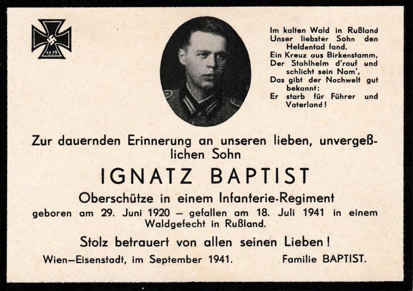 43 Paulhart Gottfried Katzelsdorf Ostfront- *~1926  18.12.1943 |