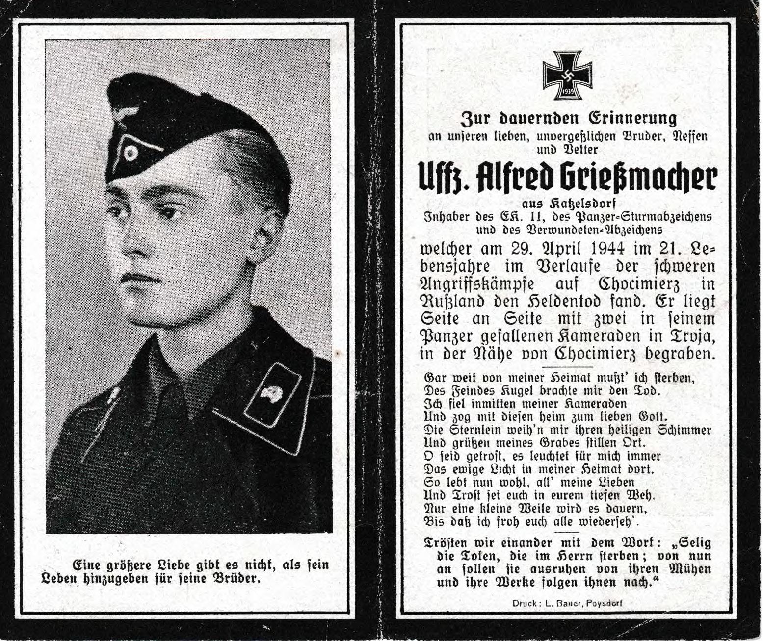12  Griesmacher Alfred Hauptstraße 68 Troja Chocimierz/Russland- *19.07.1923  29.04.1944 |