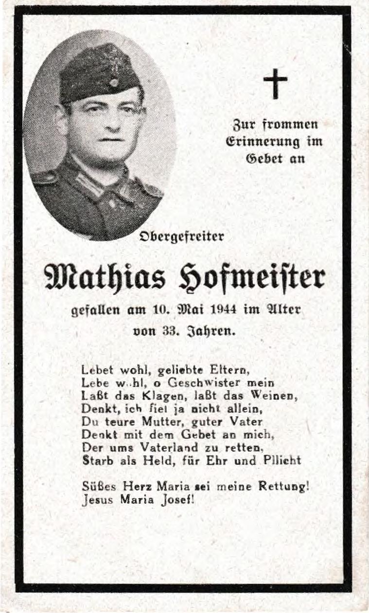 23  Hofmeister Mathias Hauptstraße 4 - *23.04.1911  10.05.1944 |