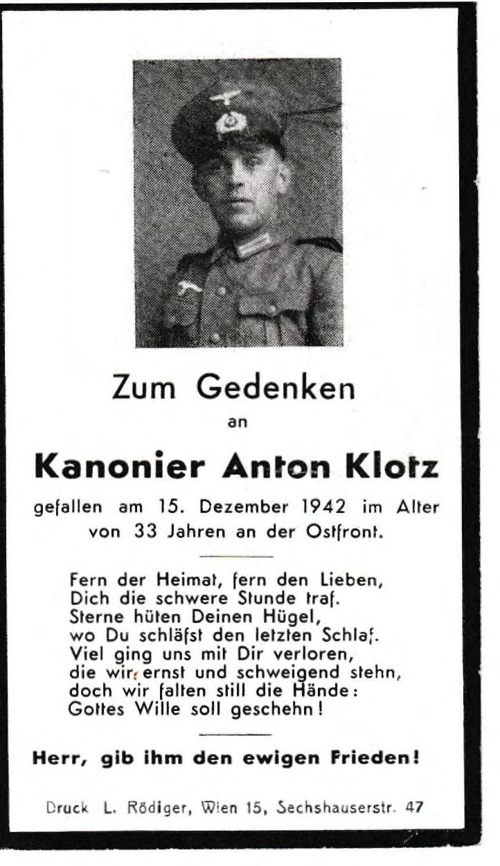 Klotz Anton Katzelsdorf-*~1909 15.12.1942 |