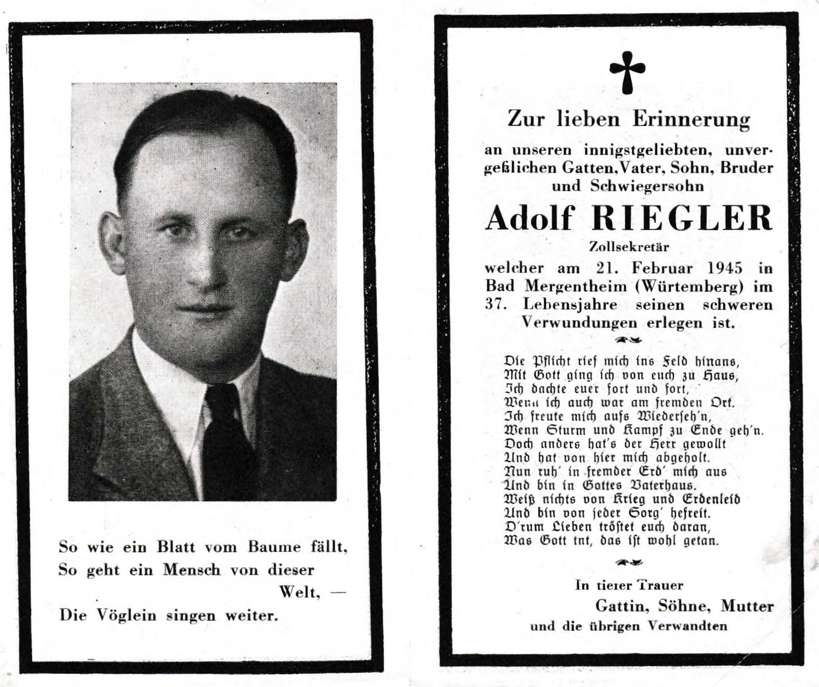 50  Riegler Adolf Katzelsdorf Bad Mergenheim (Würtemberg) Zollsekretär