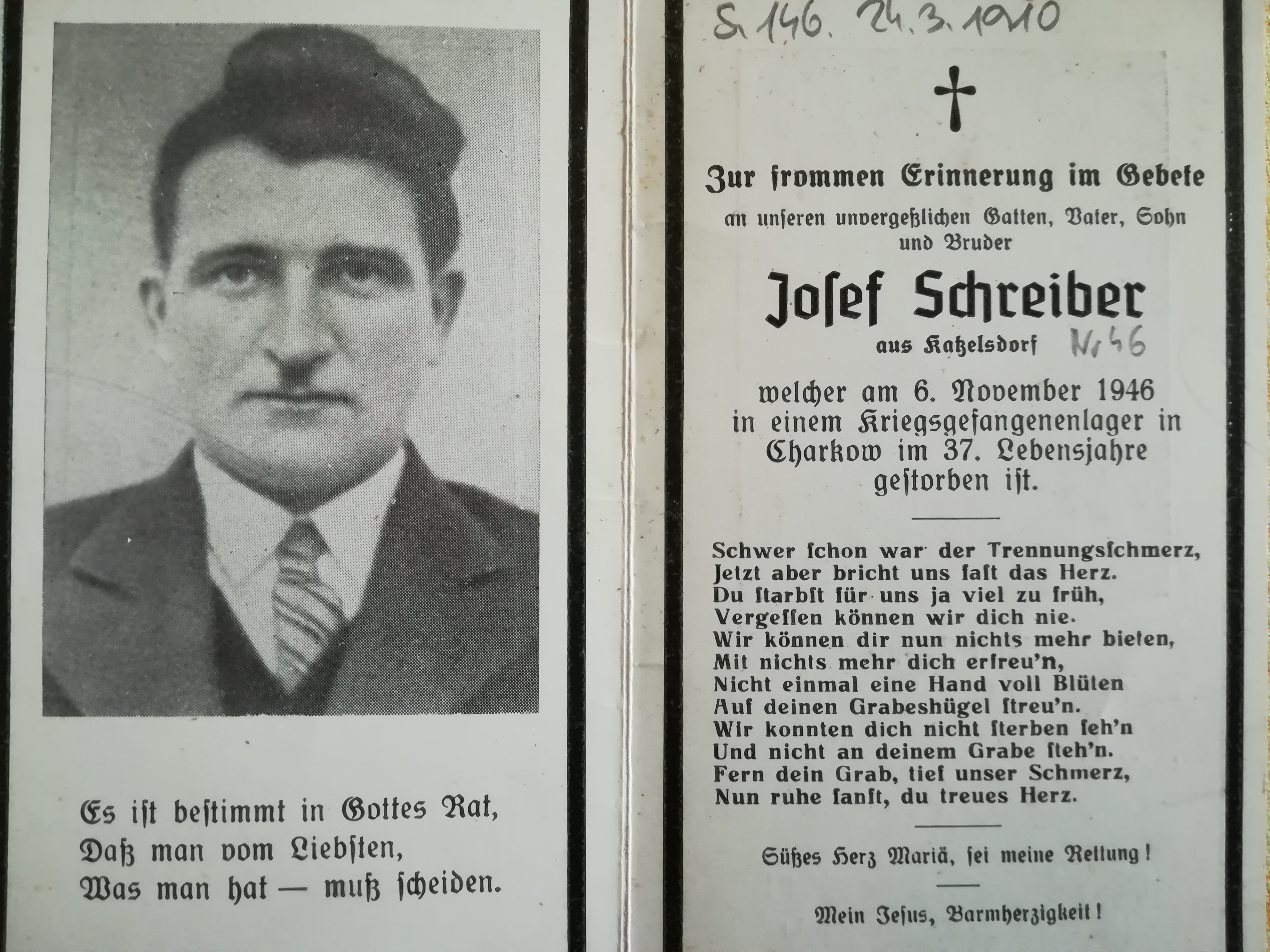 54  Schreiber Josef Hauptstraße 46 Kriegsgefangenenlager Charkow - *24.03.1910  06.11.1946 |