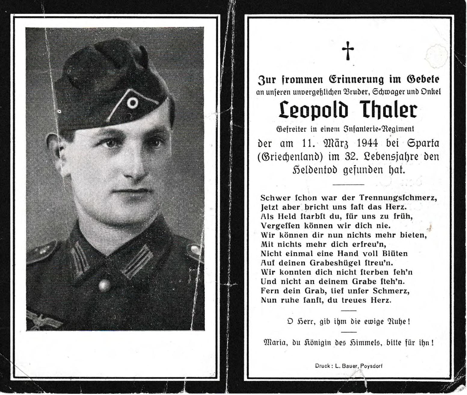 60  Thaler Leopold Hauptstraße 25 bei Sparta/Griechenland - *30.09.1912  11.03.1944 |