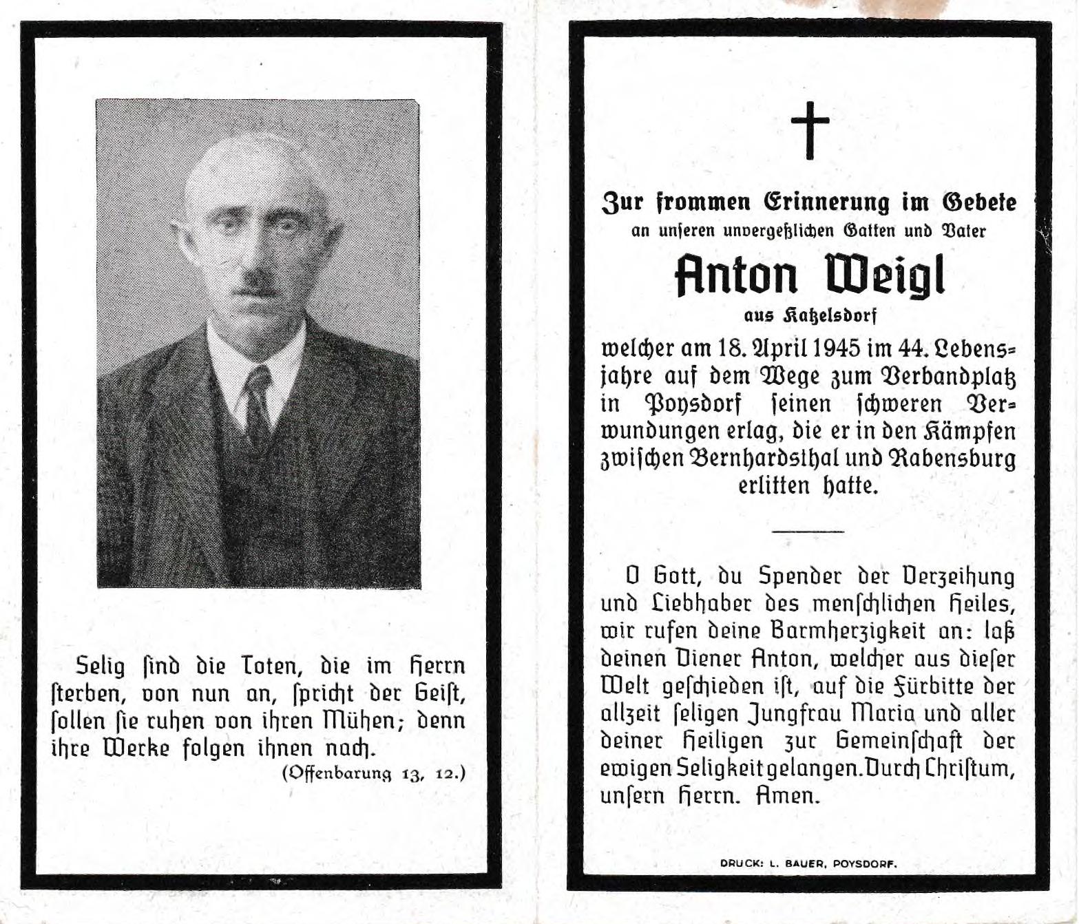 65  Weigl Anton Teichberg 232 Bernhardsthal u. Rabensburg- *11.12.1901  18.04.1945 |