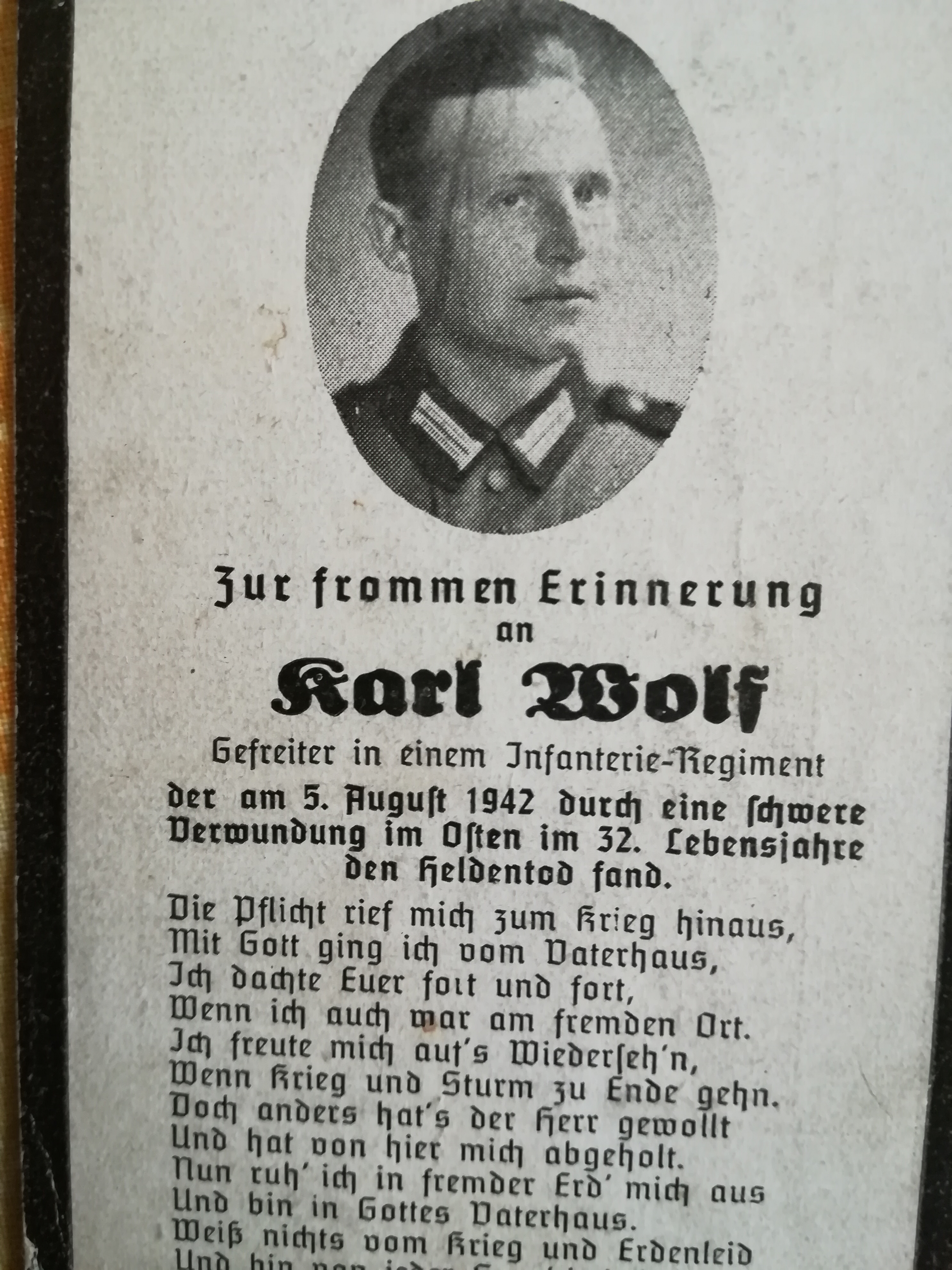 67  Wolf Karl Hauptstraße 44 Ostfront- *01.01.1911  05.08.1942 |