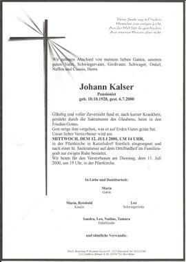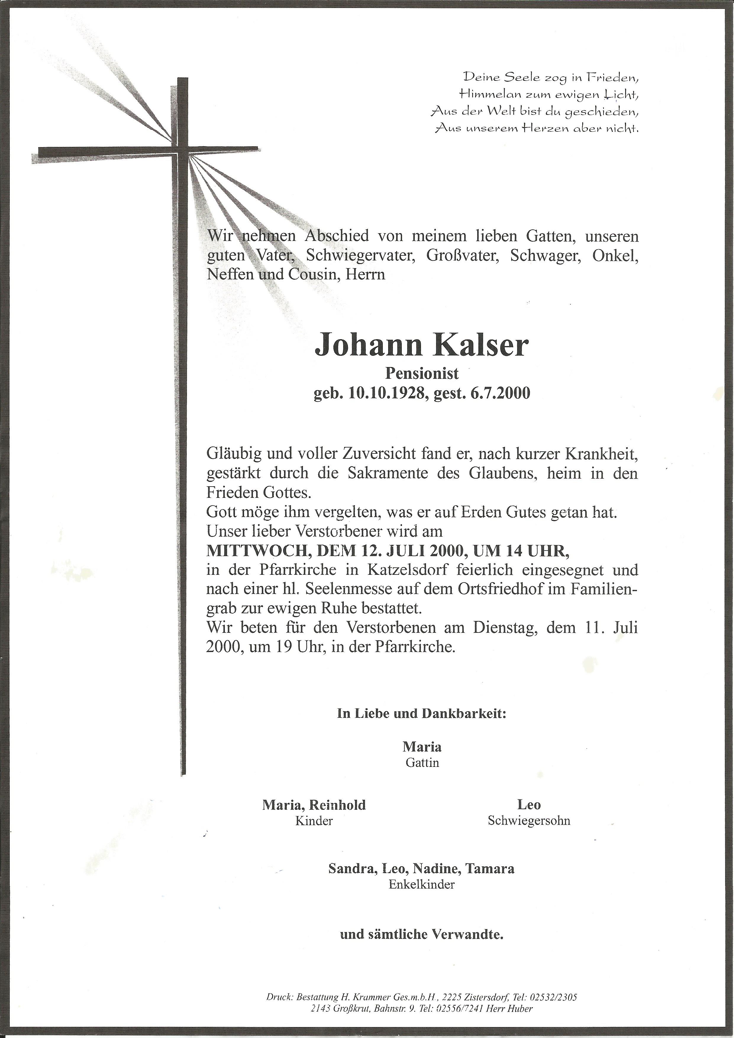6  Kalser Johann Teichberg 184 - *10.10.1928 +06.07.2000 |