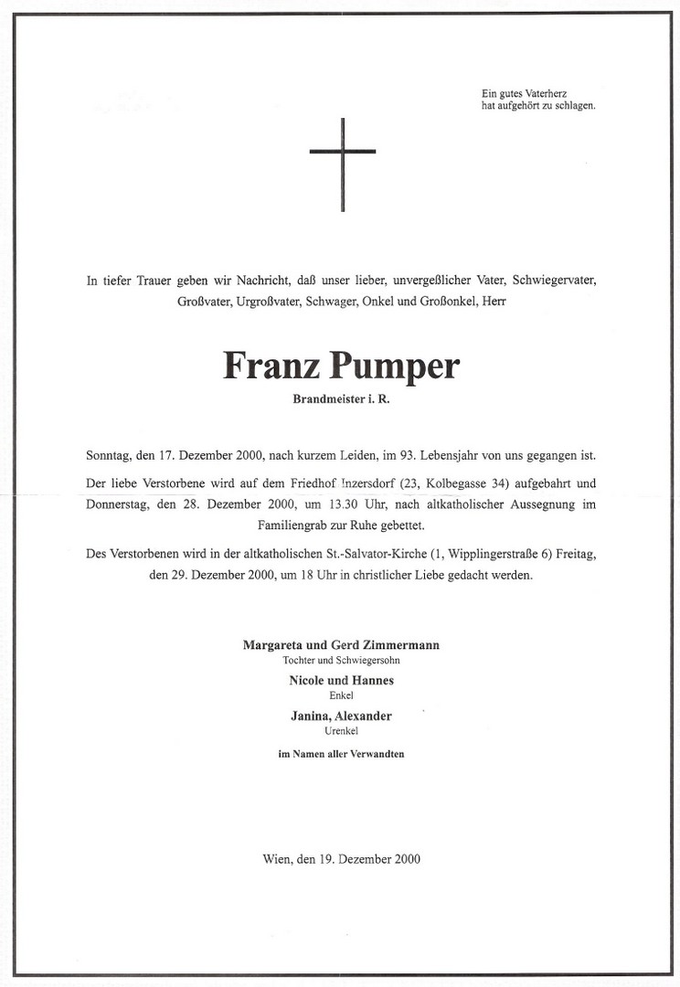 10  Pumper Franz Marterberg 140Katzelsdorf - Wien - *09.09.1908 +17.12.2000 |