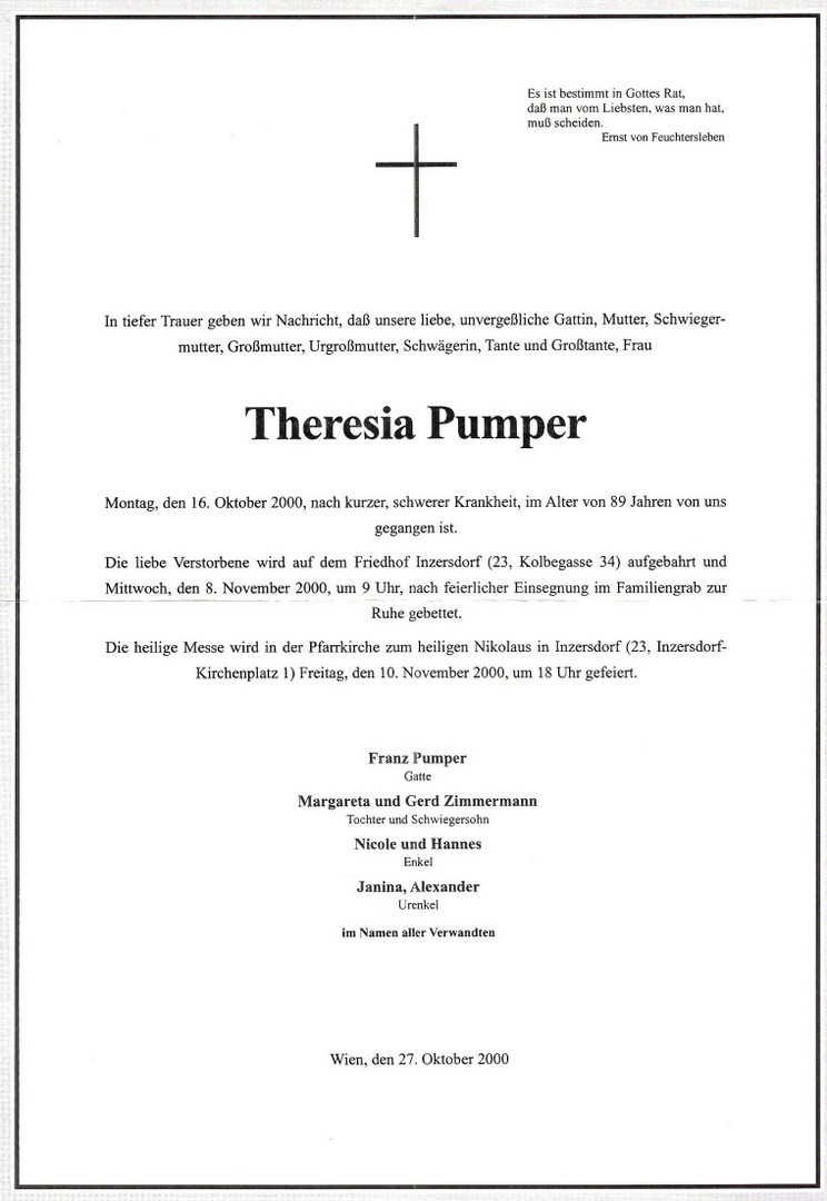 8  Pumper Theresia (Klippl) Marterberg 140Katzelsdorf - Wien - *10.10.1911 +16.10.2000 |