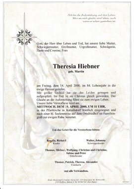 3  Hiebner Theresia (Martin) Radschin 89 - *27.02.1917 +14.04.2000 |