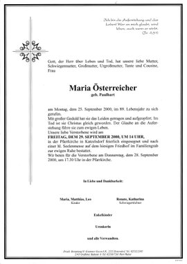 7  Österreicher Maria (Paulhart) Hauptstraße 147 - *09.11.1911 +25.09.2000 |