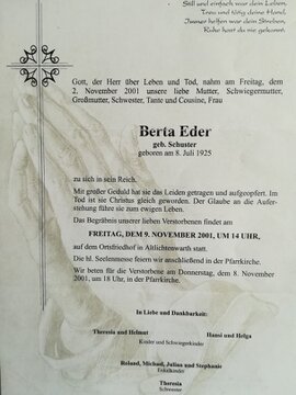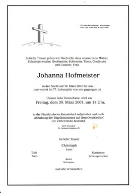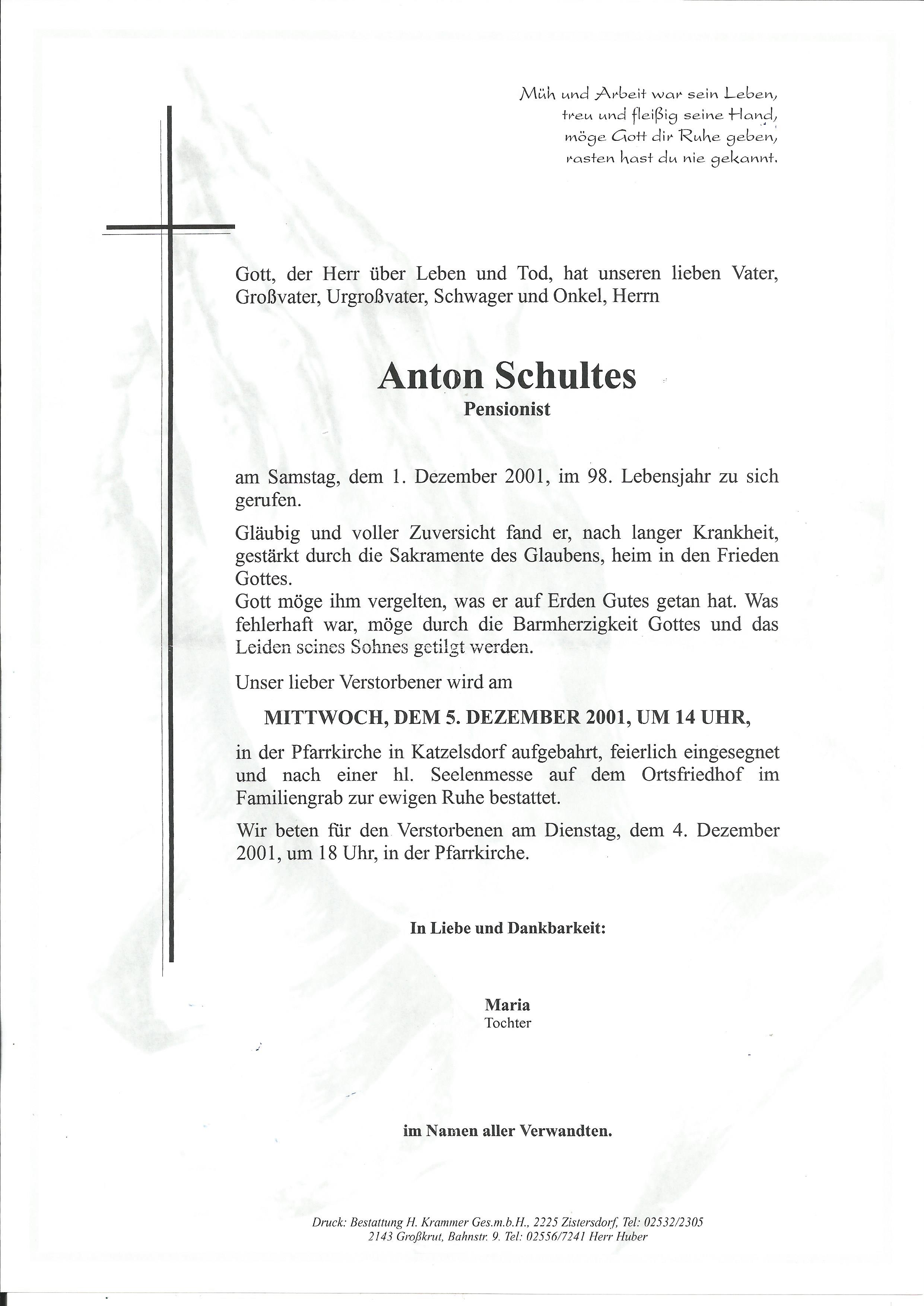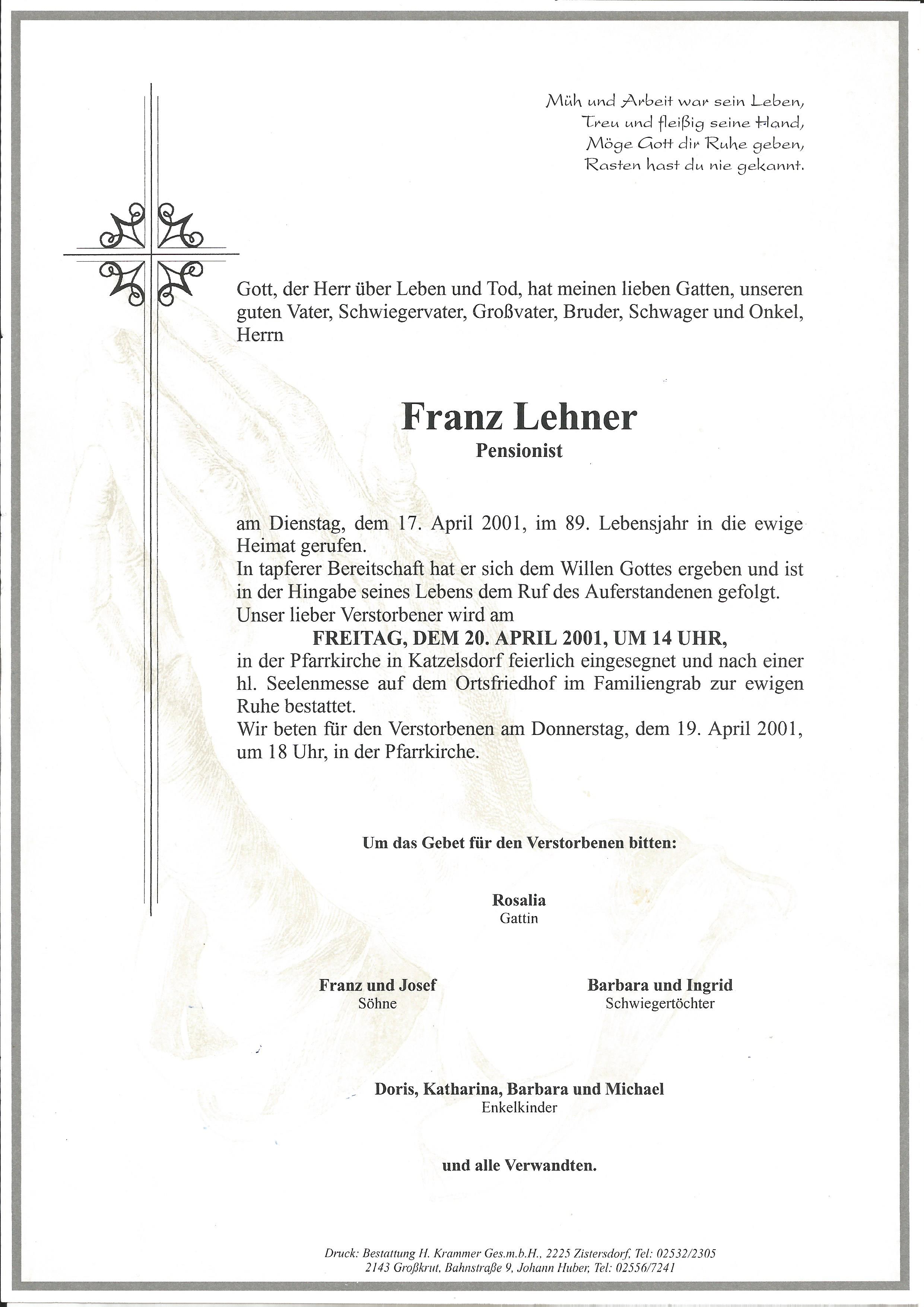1 Katzelsdorf - 2231 Strasshof - *07.11.1929 +12.01.2001 |