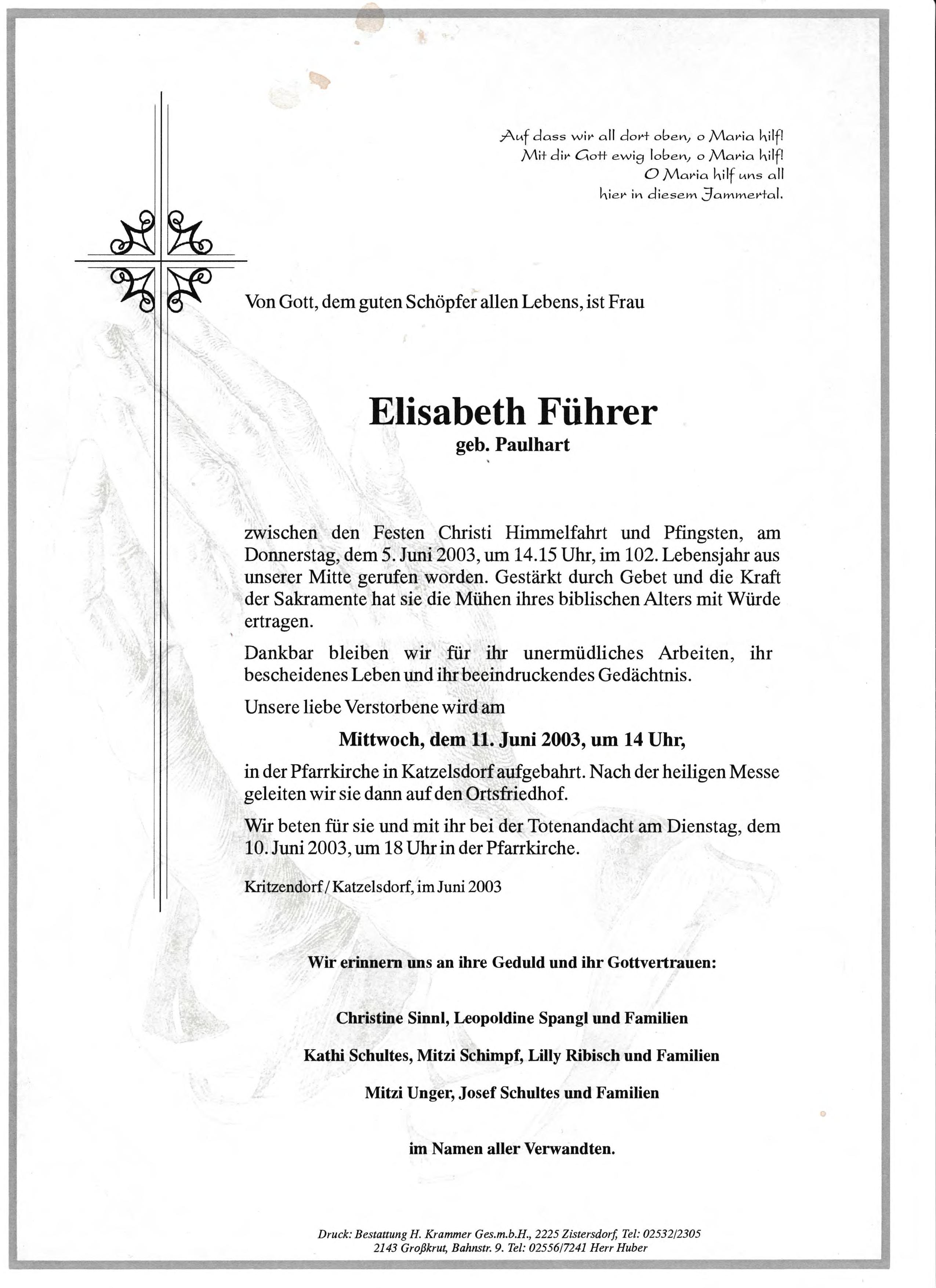 2 Hiebner Maria Hauptstraße 55 - *10.12.1913 +02.02.2003 |