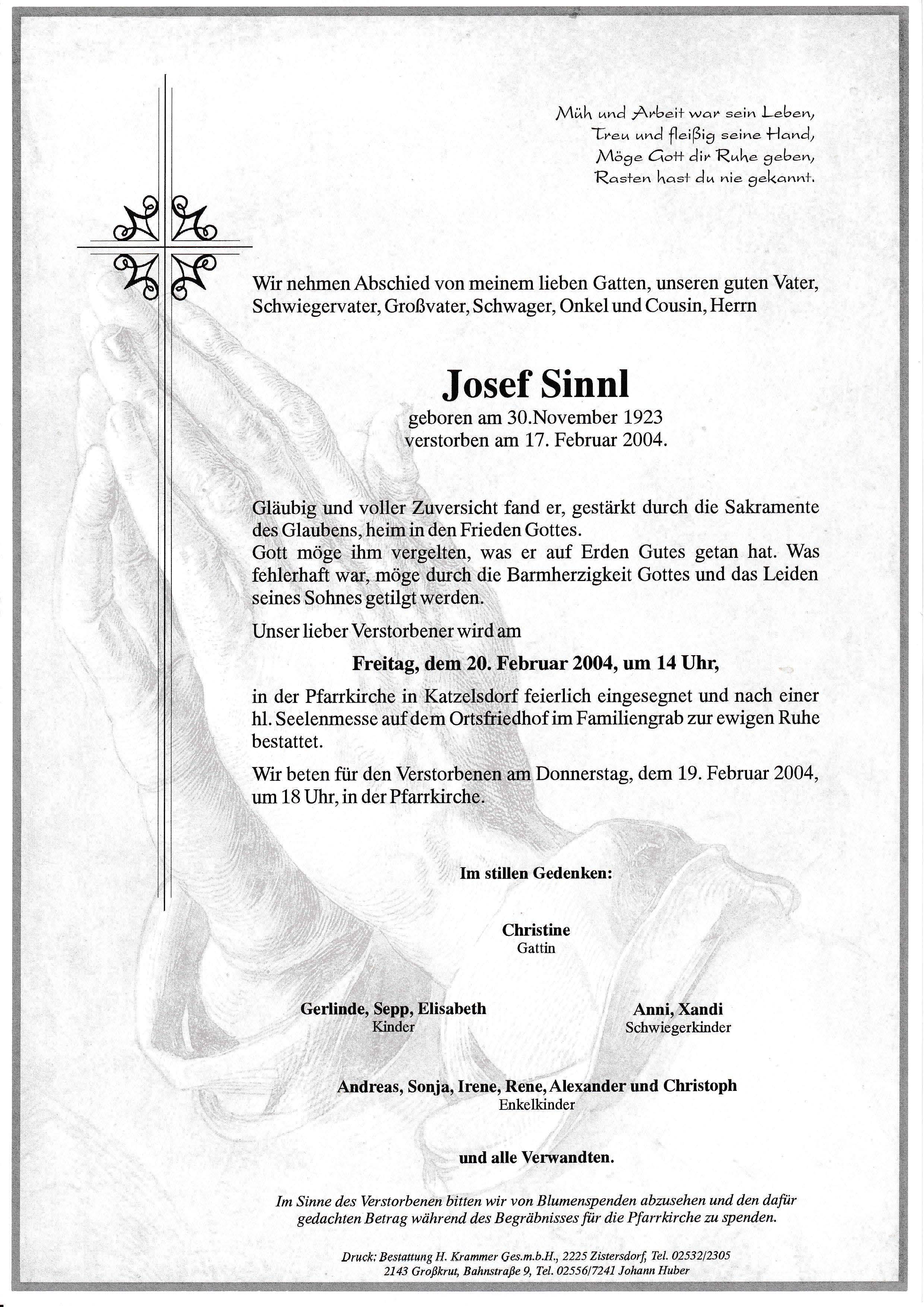 7 Hauptstraße 18 Katzelsdorf - Bernhardsthal 60 - *25.04.1914 +27.07.2004 |