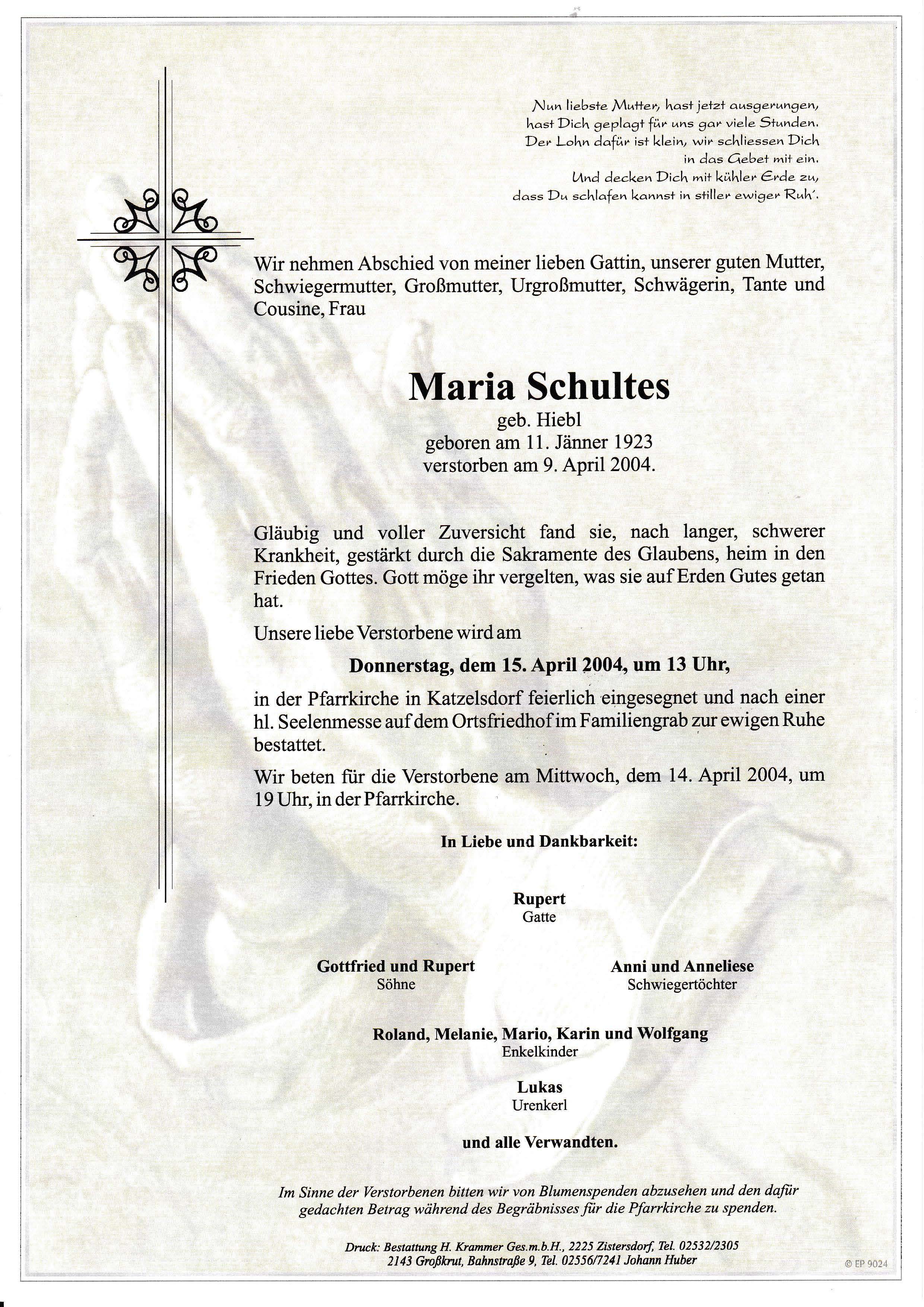 5 Schultes Maria (Hiebl) Hauptstraße 64 - *11.01.1923 +09.04.2004 |