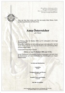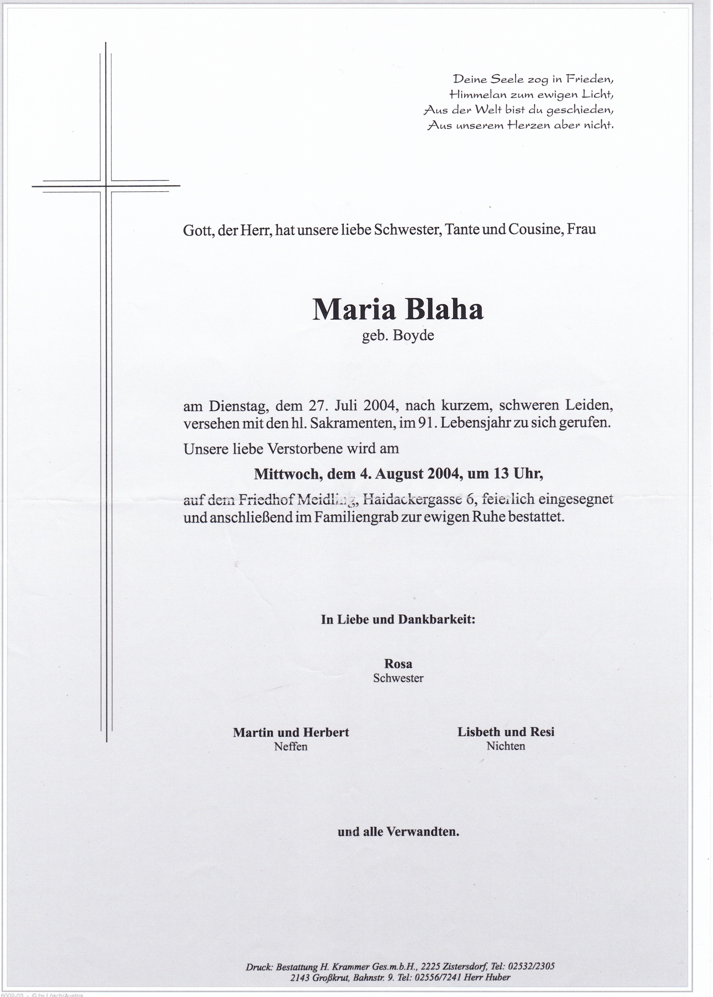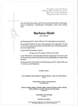 1 Hiebl Barbara (Hiebner) Hauptstraße 29 - *22.11.1929 +24.01.2004 |
